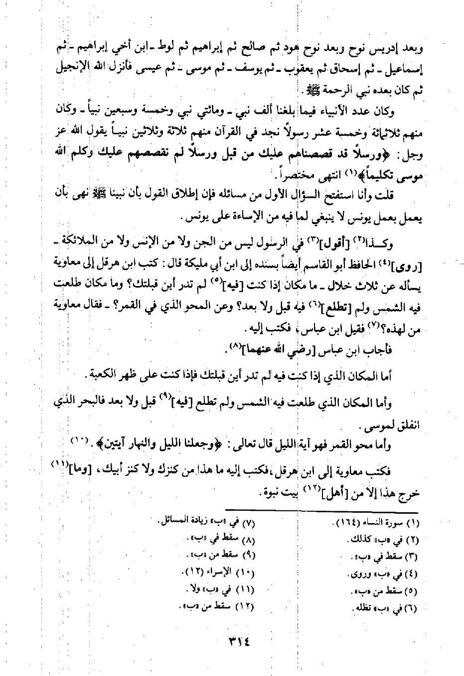 وكذا٢ [أقول] ٣ في الرسول ليس من الجن ولا من الإنس ولا من الملائكة -[روى] ٤ الحافظ أبو القاسم أيضًا بسنده إلى ابن أبي مليكة قال: كتب ابن هرقل إلى معاوية يسأله عن ثلاث خلال ما مكان إذا كنت [فيه] ٥ لم تدر أين قبلتك؟ وما مكان طلعت فيه الشمس ولم [تطلع] ٦ فيه قبل ولا بعد؟ وعن المحو الذي في القمر؟ -فقال معاوية من لهذه؟ ٧ فقيل ابن عباس، فكتب إليه.