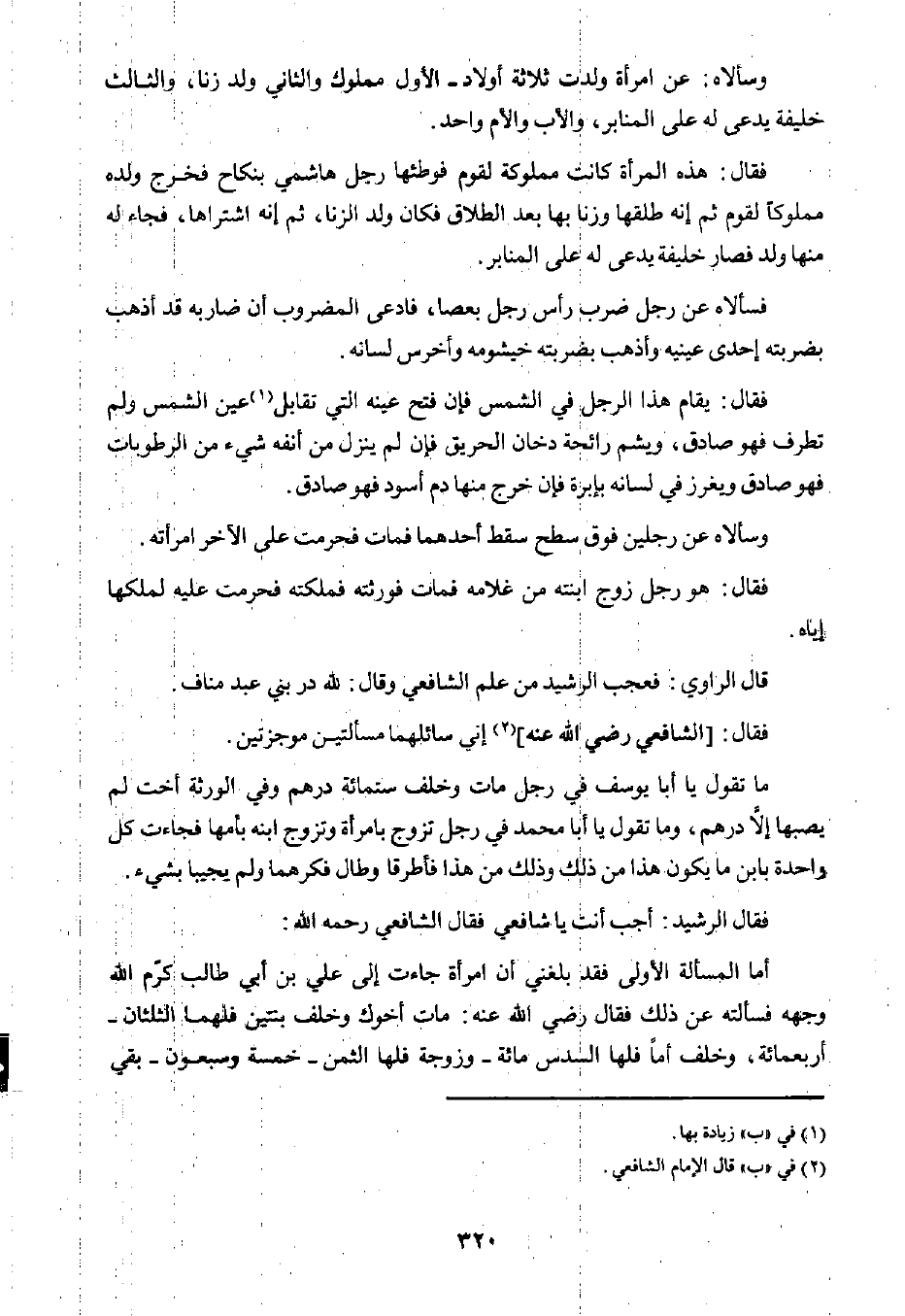 فقال الرشيد: أجب أنت يا شافعي فقال الشافعي رحمه الله: