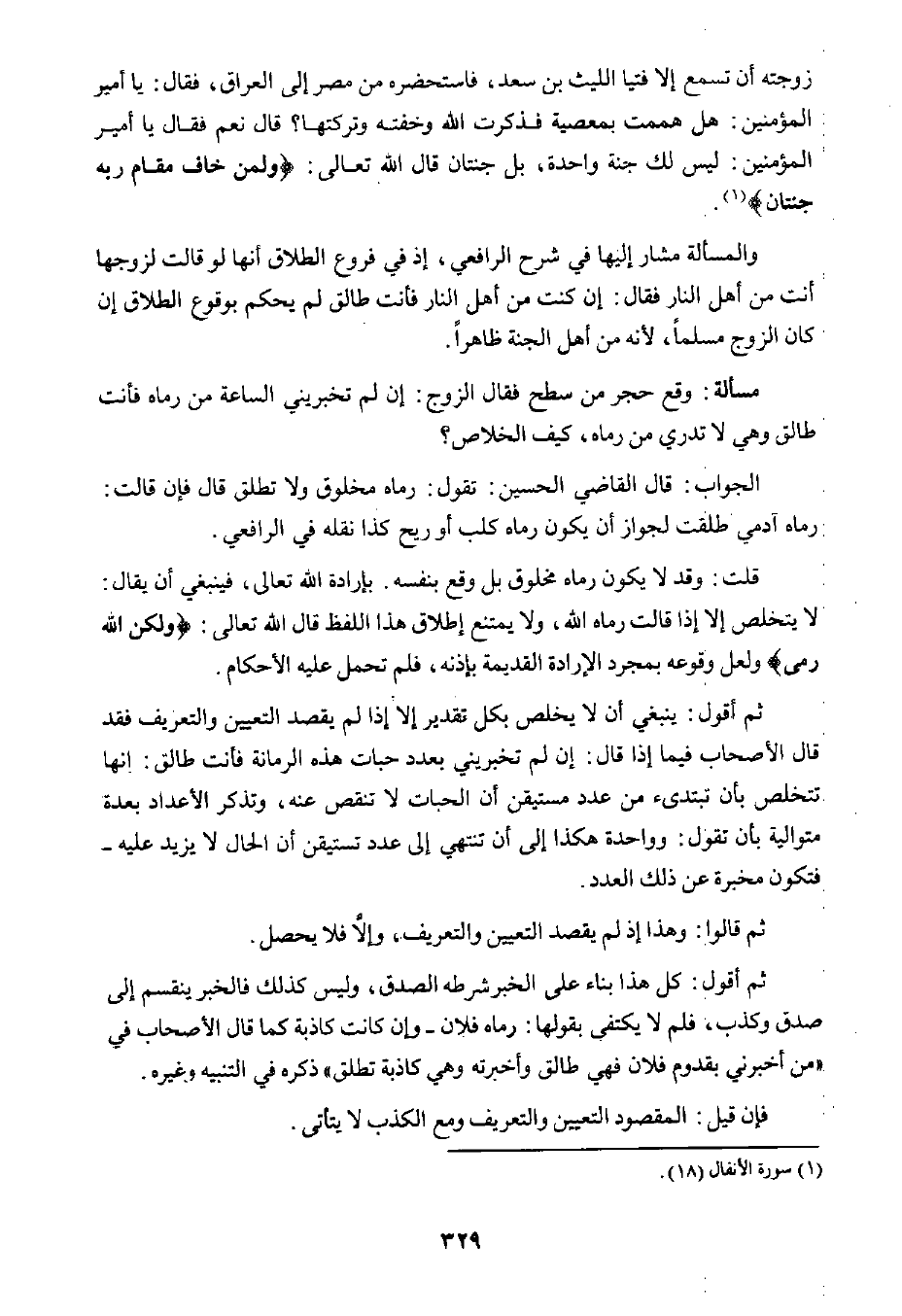 والمسألة مشار إليها في شرح الرافعي؛ إذ في فروع الطلاق أنها لو قالت لزوجها أنت من أهل النار فقال: إن كنت من أهل النار فأنت طالق لم يحكم بوقوع الطلاق إن كان الزوج مسلمًا؛ لأنه من أهل الجنة ظاهرًا.