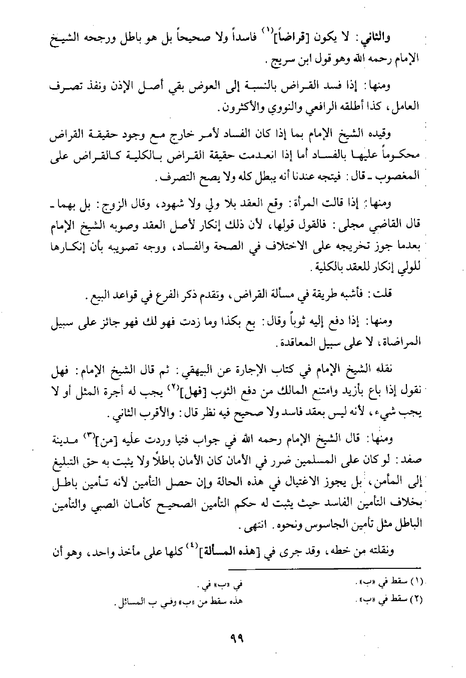 والثاني: لا يكون [قراضًا] ١ فاسدًا ولا صحيحًا بل هو باطل ورجحه الشيخ الإمام رحمه الله وهو قول ابن سريج.