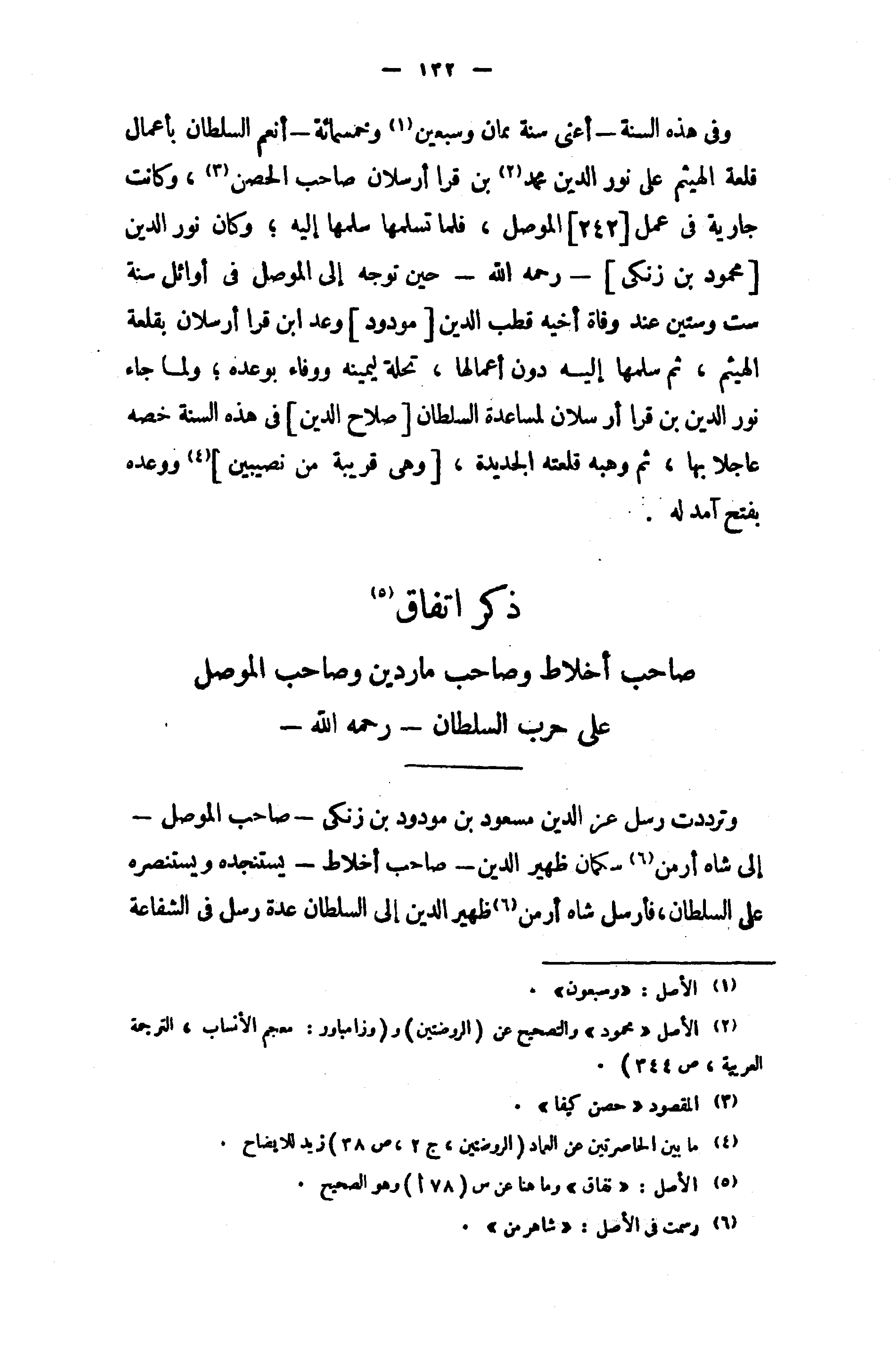 وترددت رسل عز الدين مسعود بن مودود بن زنكى - صاحب الموصل - إلى شاه أرمن (¬6) سكمان ظهير الدين - صاحب أخلاط - يستنجده ويستنصره على السلطان، فأرسل شاه أرمن (6) ظهير الدين إلى السلطان عدة رسل في الشفاعة