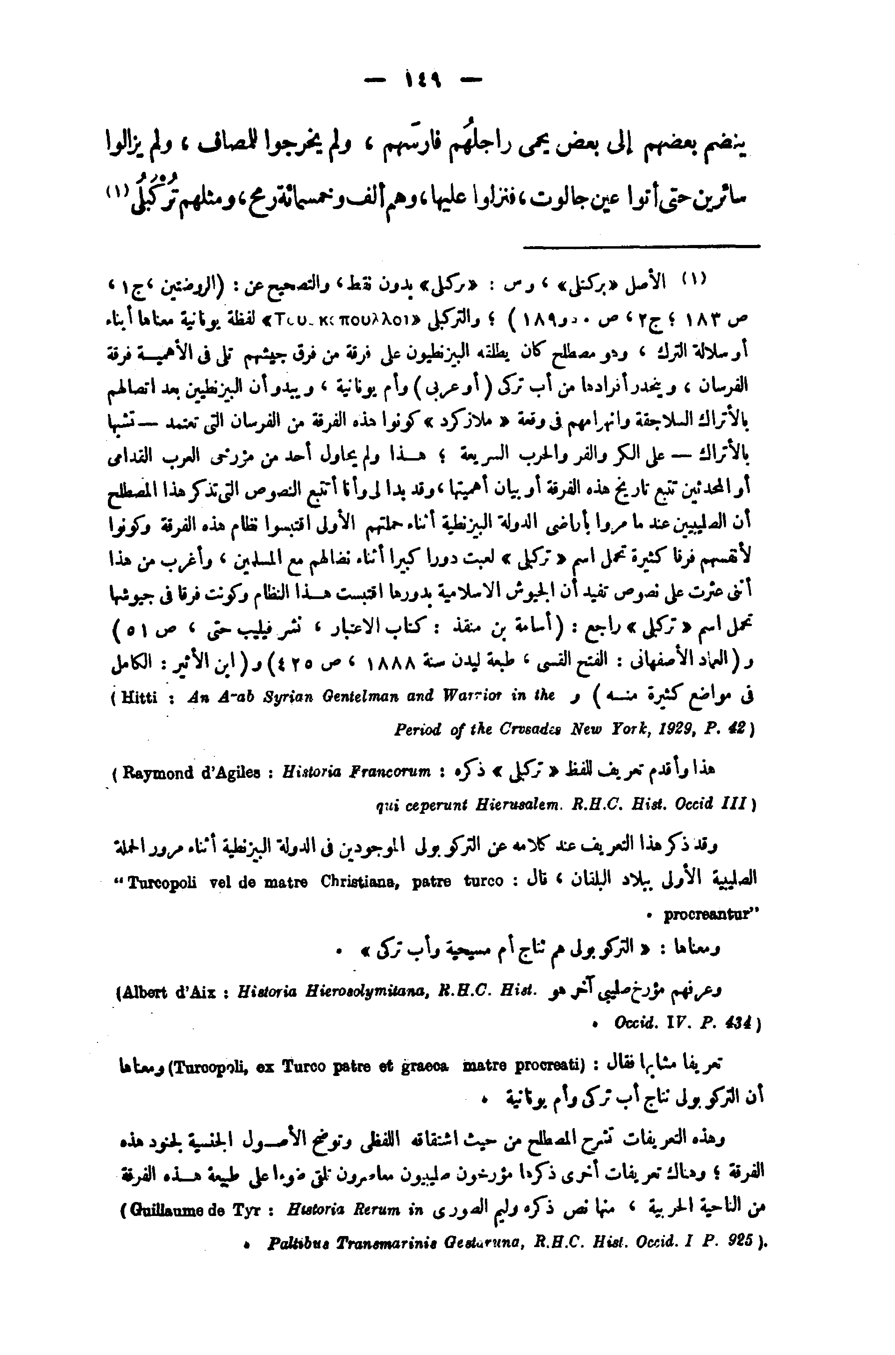 هذا وأقدم تعريف للفظ «تركبلى» ذكره: (Raymond d'Agiles : Historia Francorum qui ceperunt Hierusalem .R .H .C .Hist .Occid III)