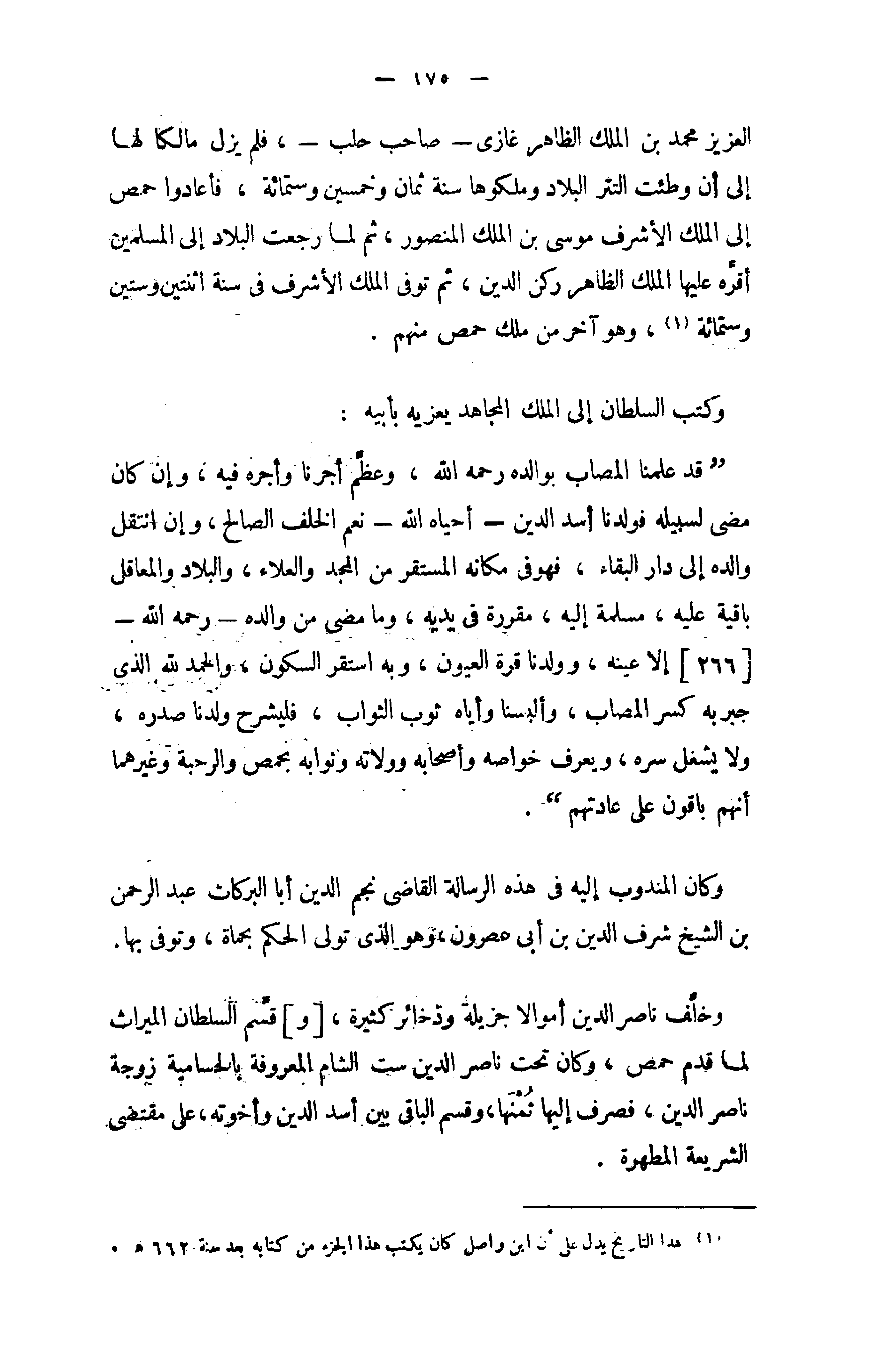 (¬1) هذا التاريخ يدل على أن ابن واصل كان يكتب هذا الجزء من كتابه بعد سنة 662 هـ.