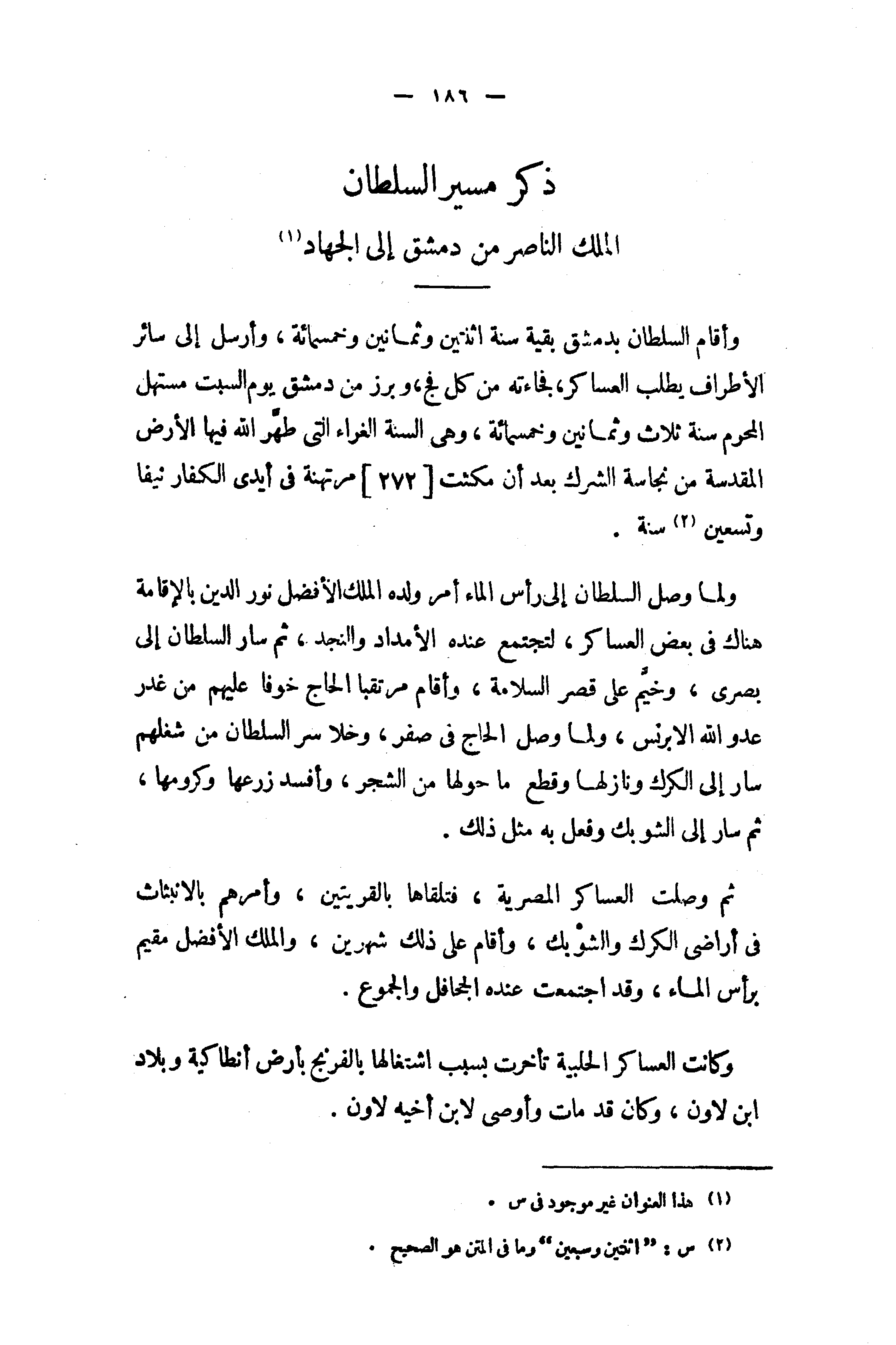 ذكر مسير السلطان