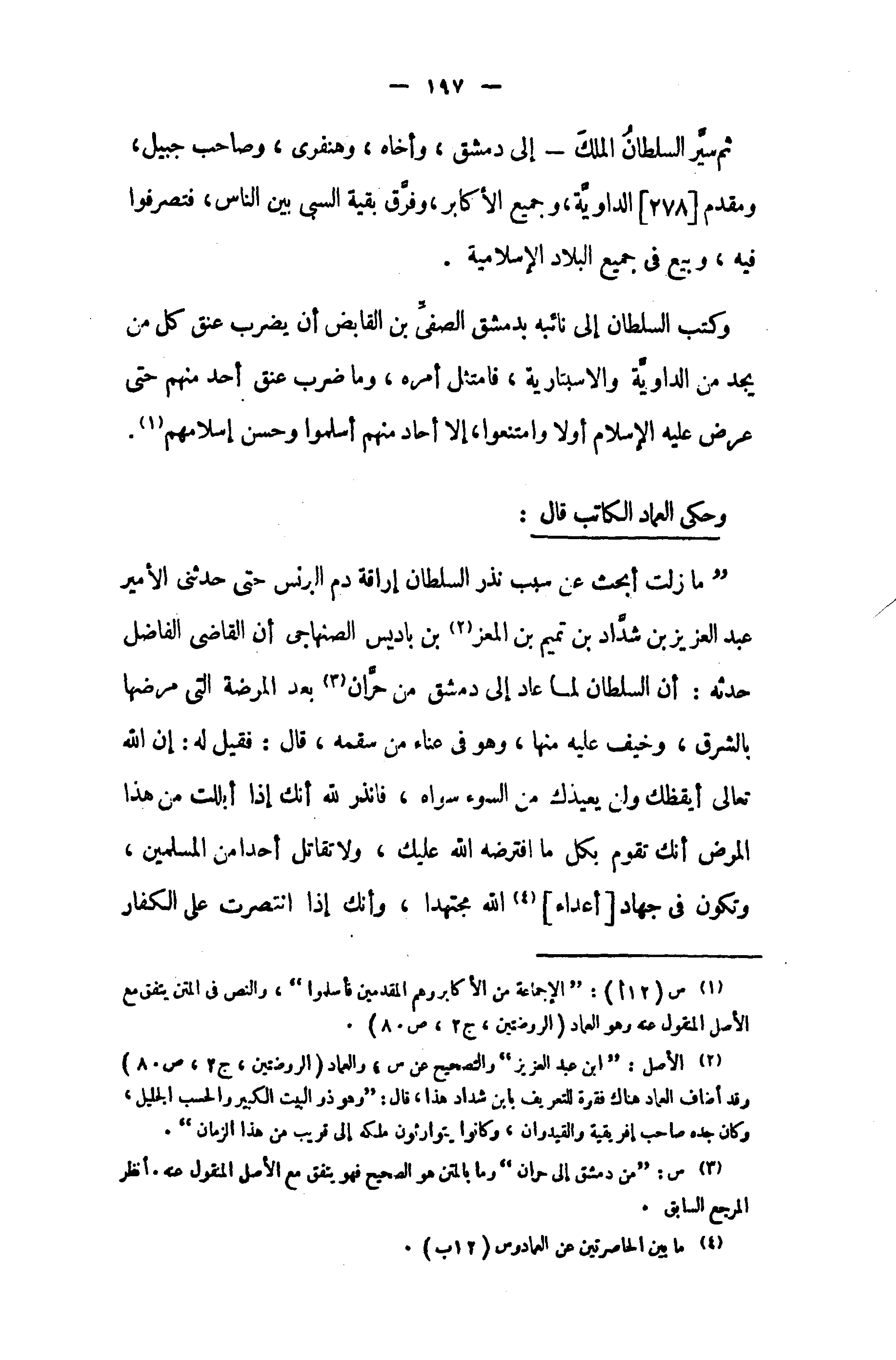 (¬2) الأصل: " ابن عبد العزيز " والتصحيح عن س، والعماد (الروضتين، ج 2، ص 80) وقد أضاف العماد هناك فقرة للتعريف بابن شداد هذا، قال: " وهو ذو البيت الكبير والحسب الجليل، وكان جده صاحب إفريقية والقيدوان، وكانوا يتوارثون ملكه إلى قريب من هذا الزمان ".