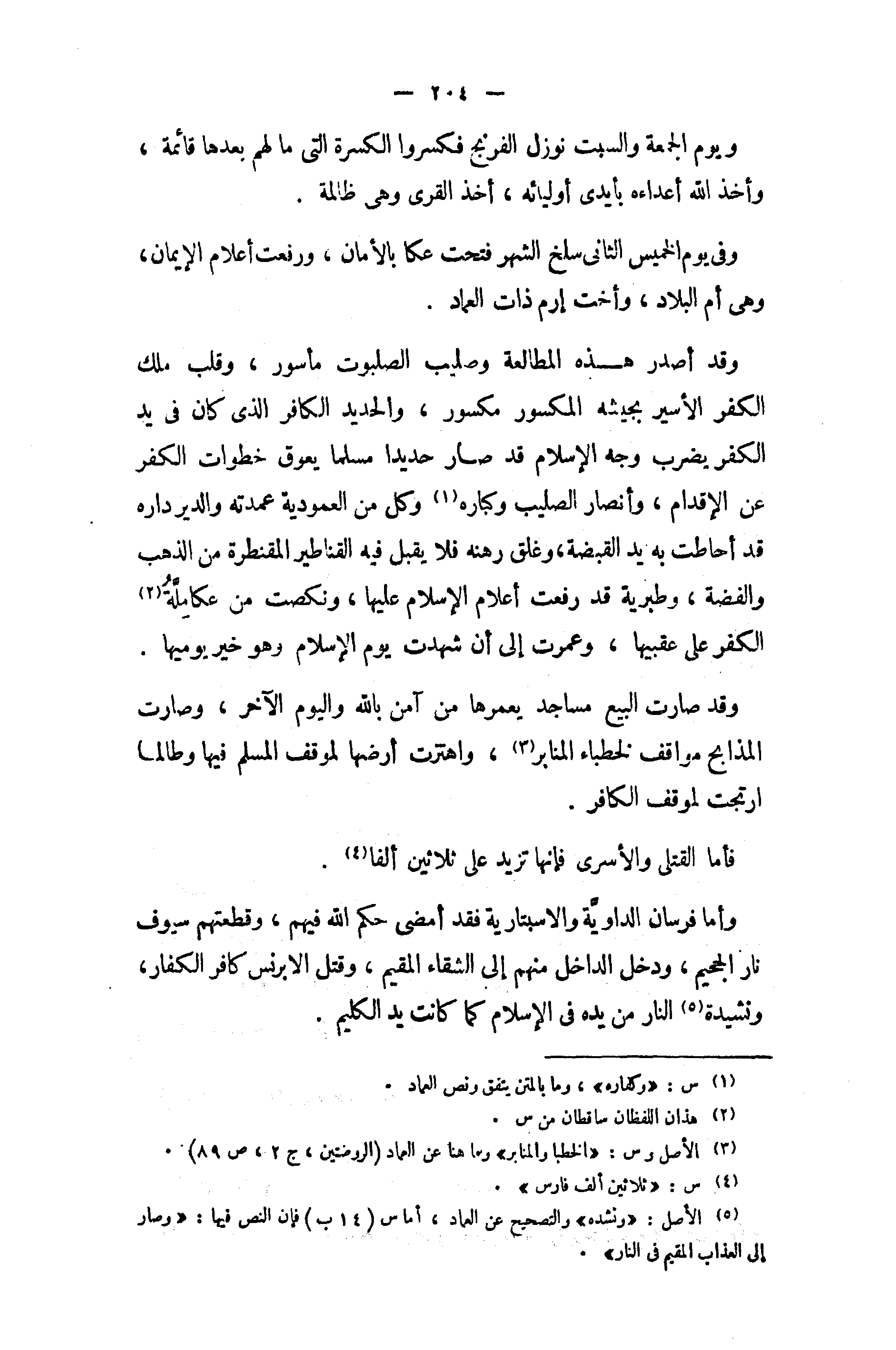 وأما فرسان الداويّة والاسبتارية فقد أمضى حكم الله فيهم، وقطعتهم سيوف نار الجحيم، ودخل الداخل منهم إلى الشقاء المقيم، وقتل الابرنس كافر الكفار، ونشيدة (¬5) النار من يده في الإسلام كما كانت يد الكليم.