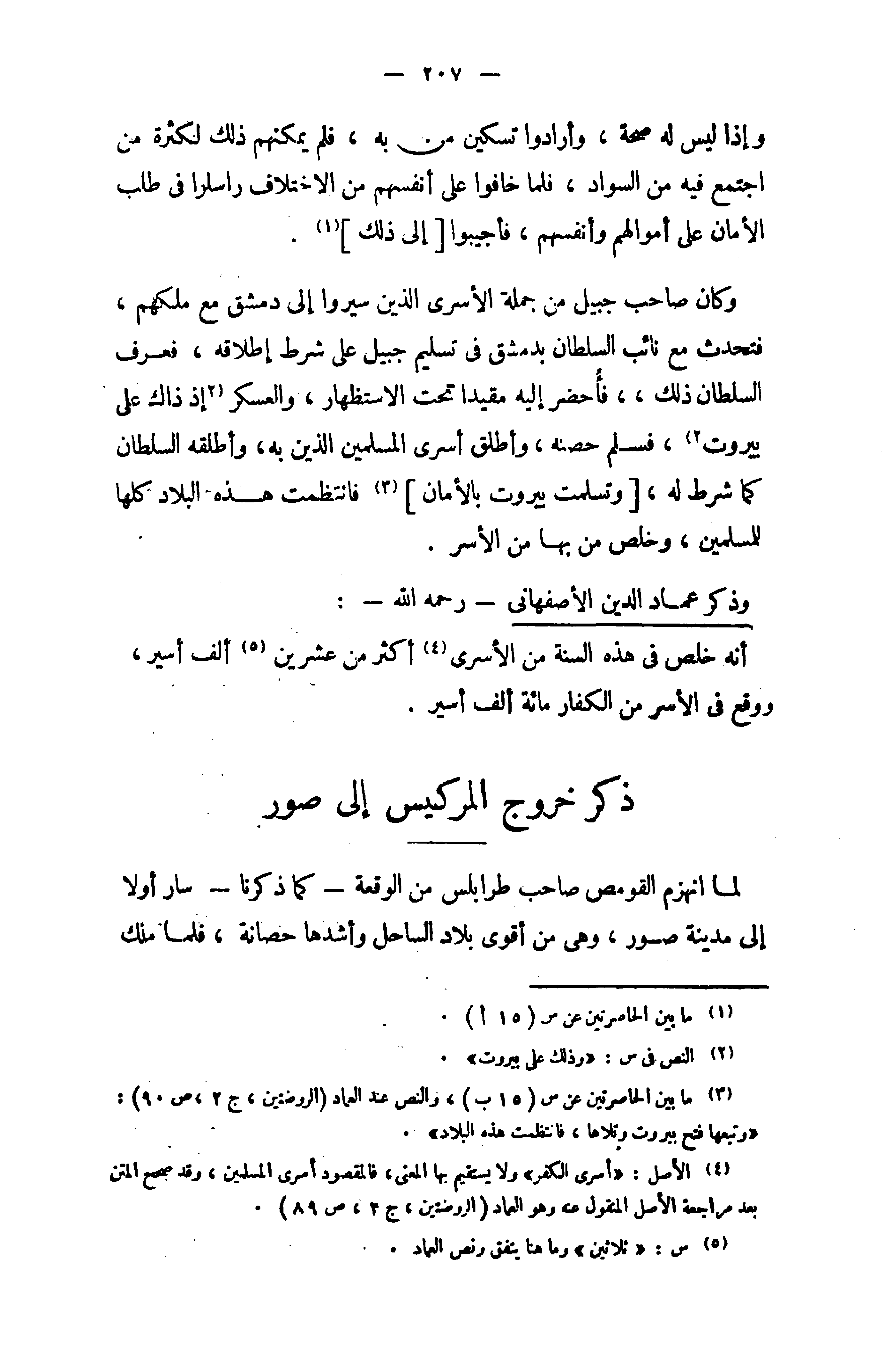 (¬4) الأصل: «أسرى الكفر» ولا يستقيم بها المعنى، فالمقصود أسرى المسلمين، وقد صحح المتن بعد مراجعة الأصل المنقول عنه وهو العماد (الروضتين، ج 2، ص 89).