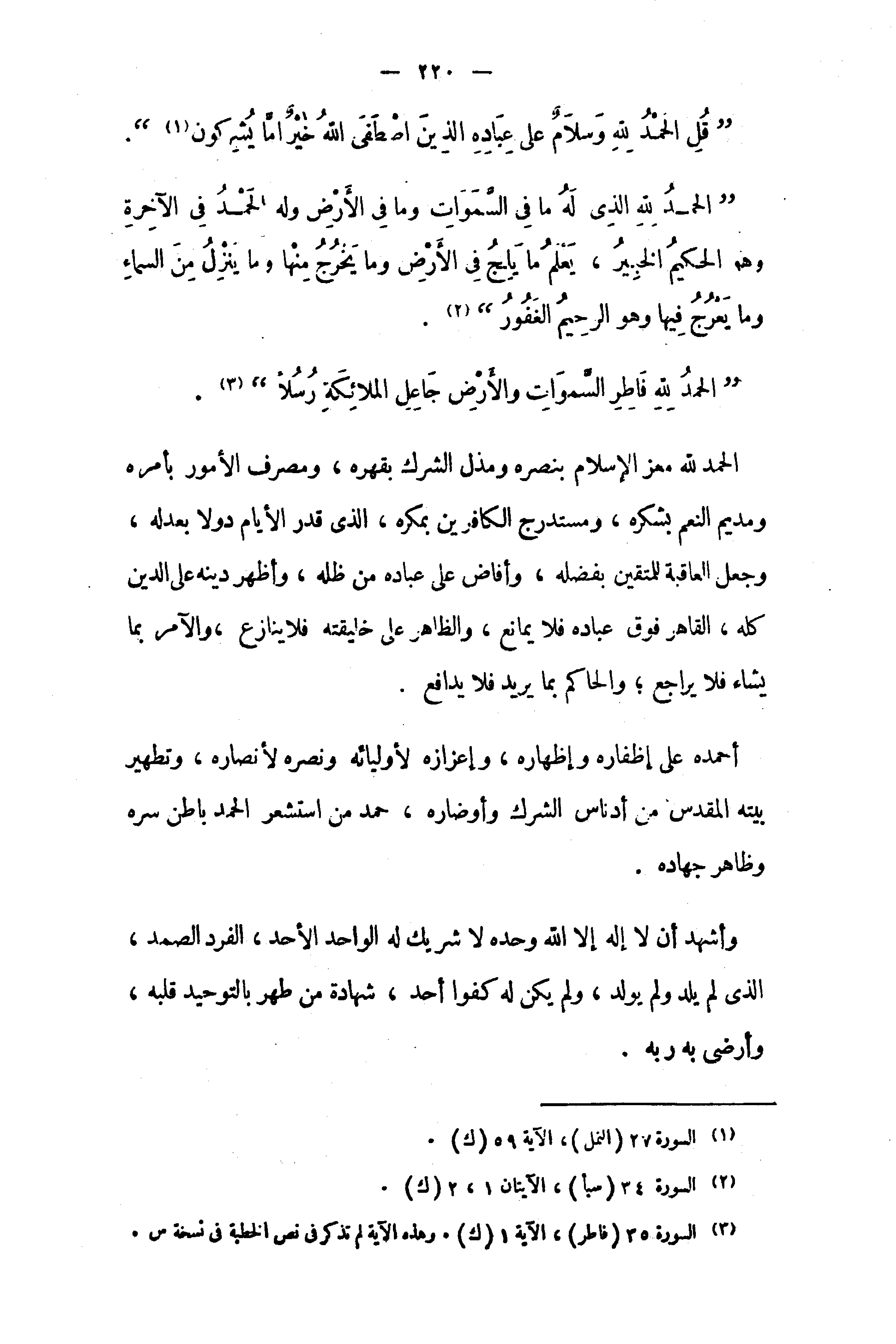 (¬3) السورة 35 (فاطر)، الآية 1 (ك). وهذه الآية لم تذكر في نص الخطبة في نسخة س.