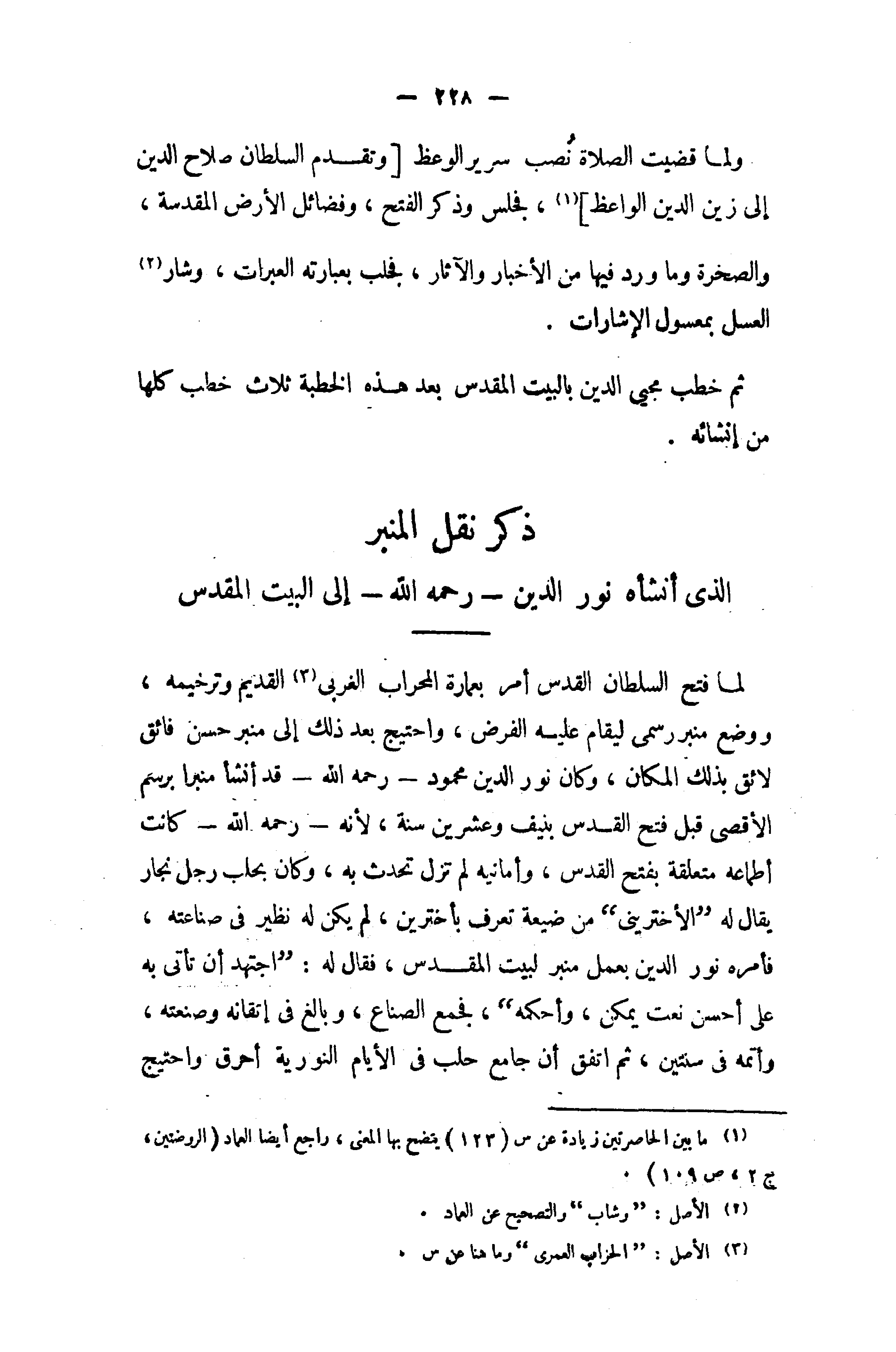 الذى أنشأه نور الدين - رحمه الله - إلى البيت المقدس