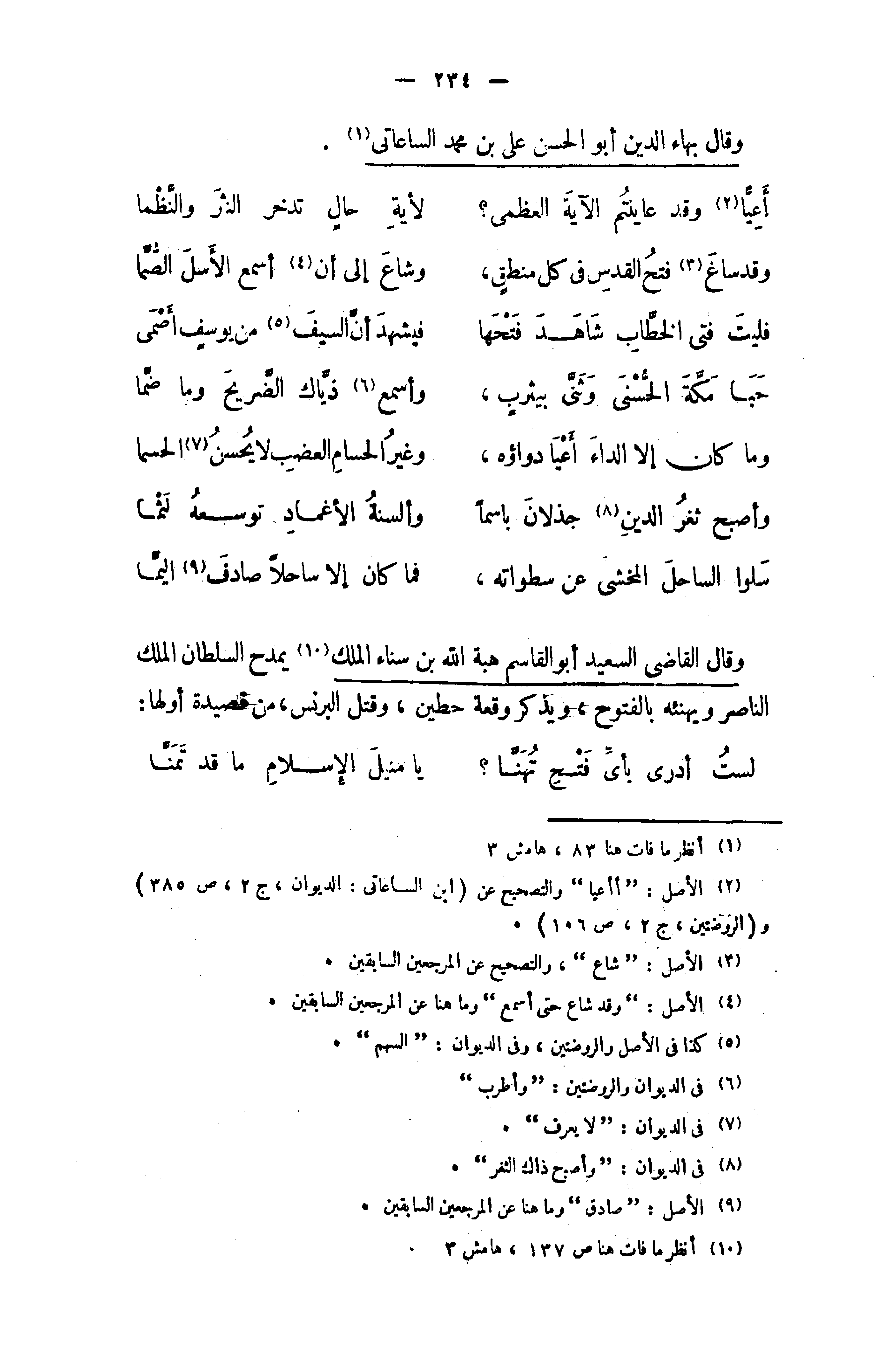 وقال بهاء الدين أبو الحسن على بن محمد الساعاتى (¬1).