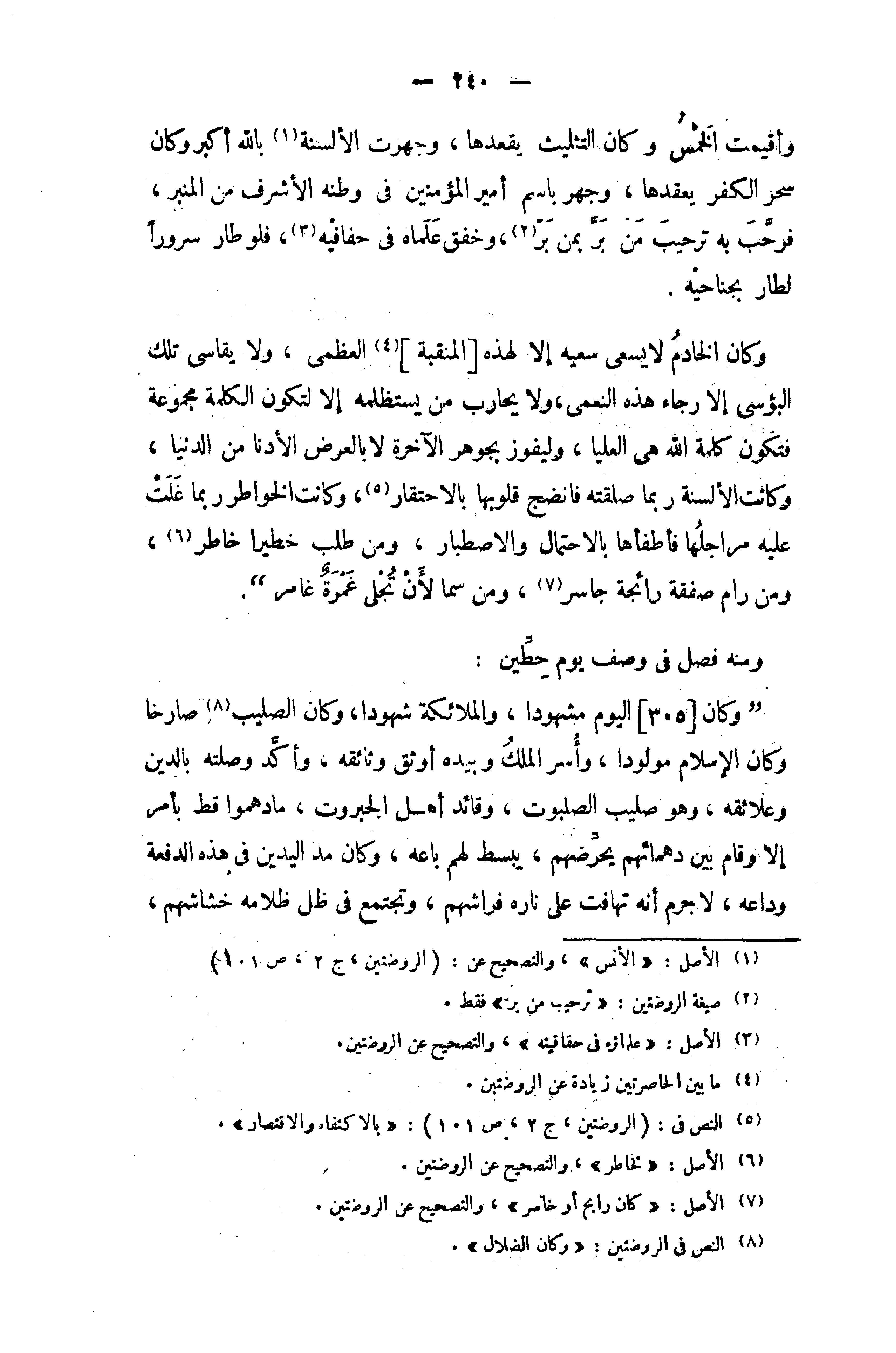 (¬8) النص في الروضتين: «وكان الضلال».