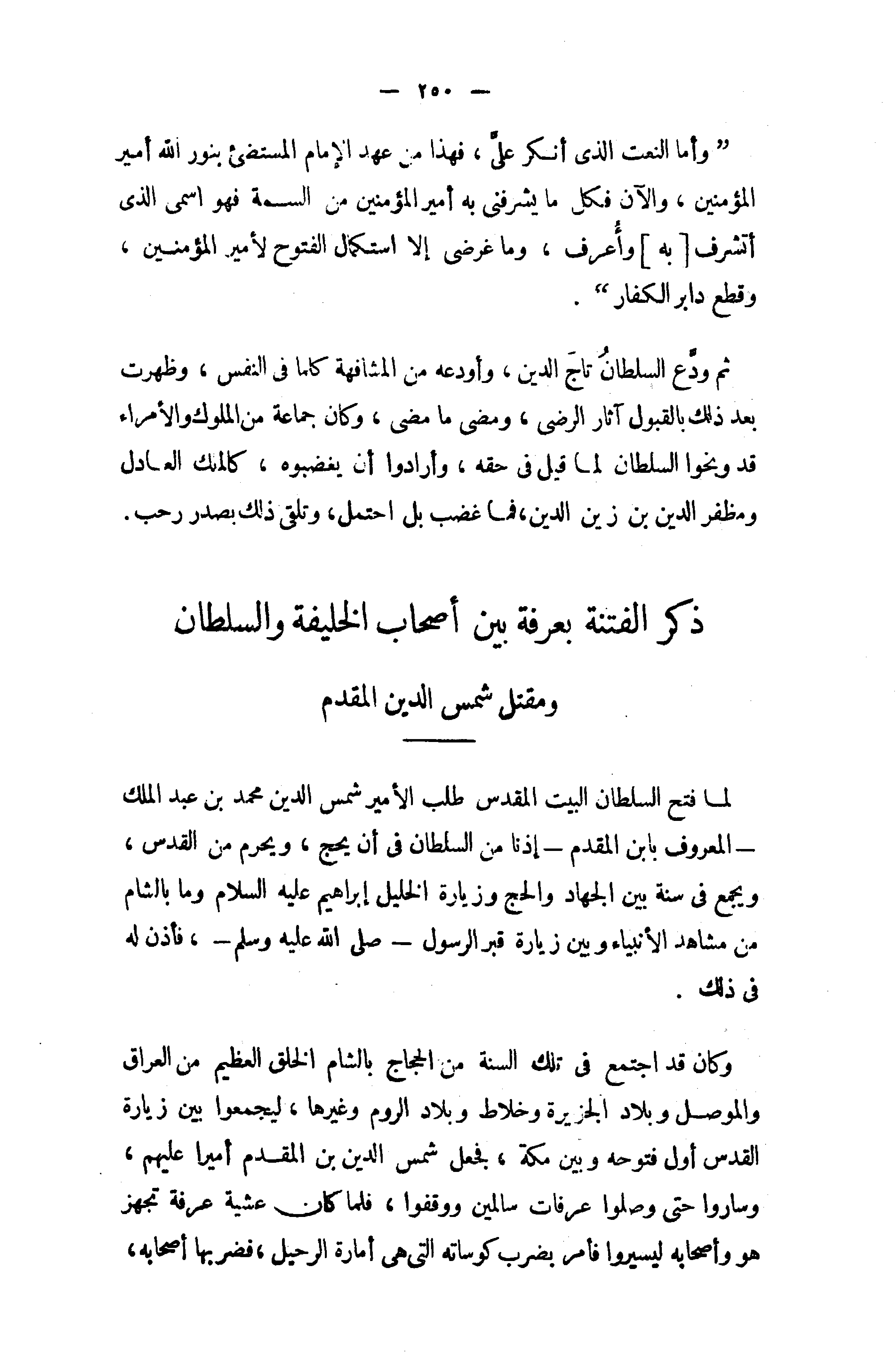 ذكر الفتنة بعرفة بين أصحاب الخليفة والسلطان
