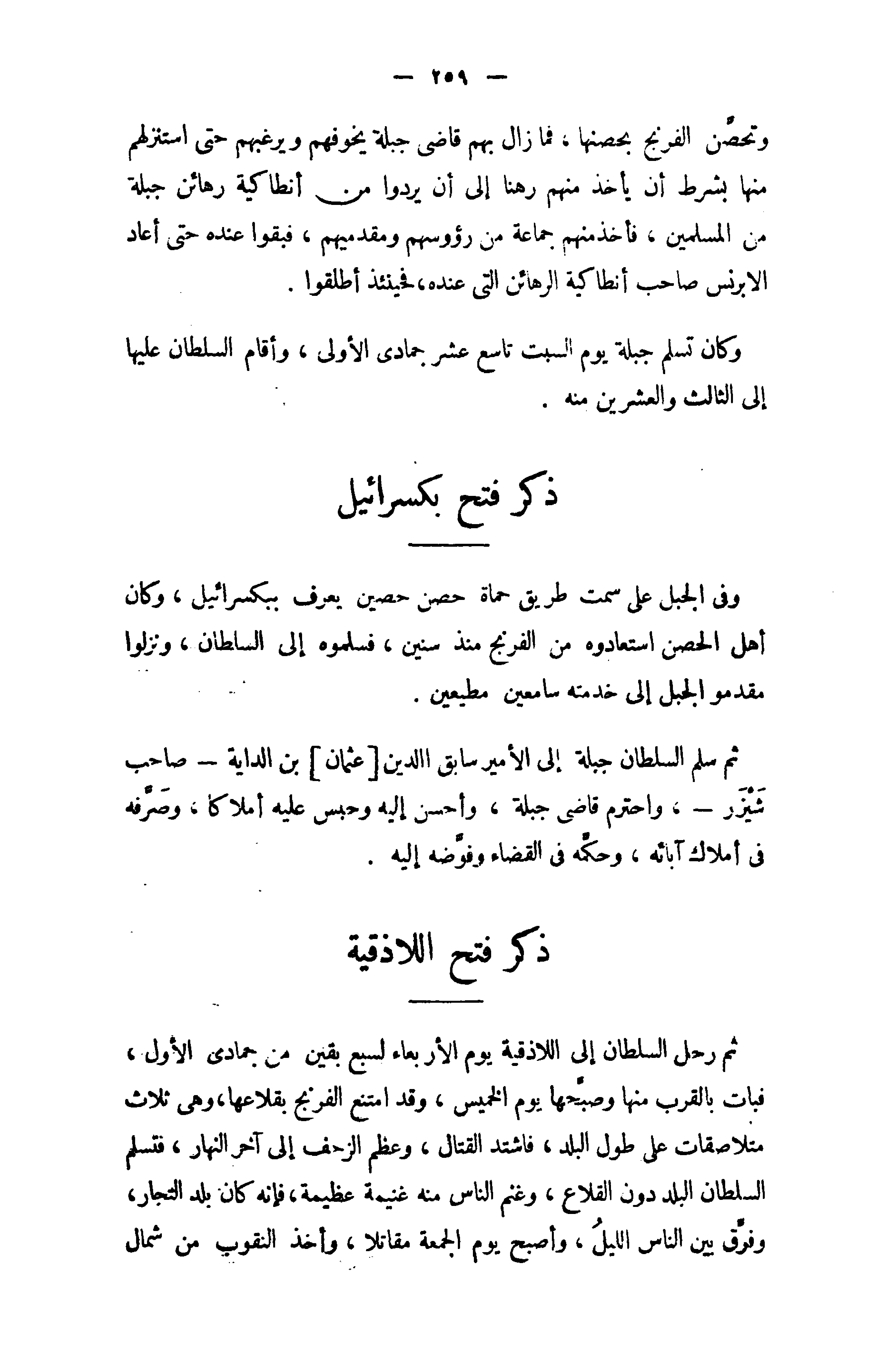 وكان تسلم جبلة يوم السبت تاسع عشر جمادى الأولى، وأقام السلطان عليها إلى الثالث والعشرين منه.