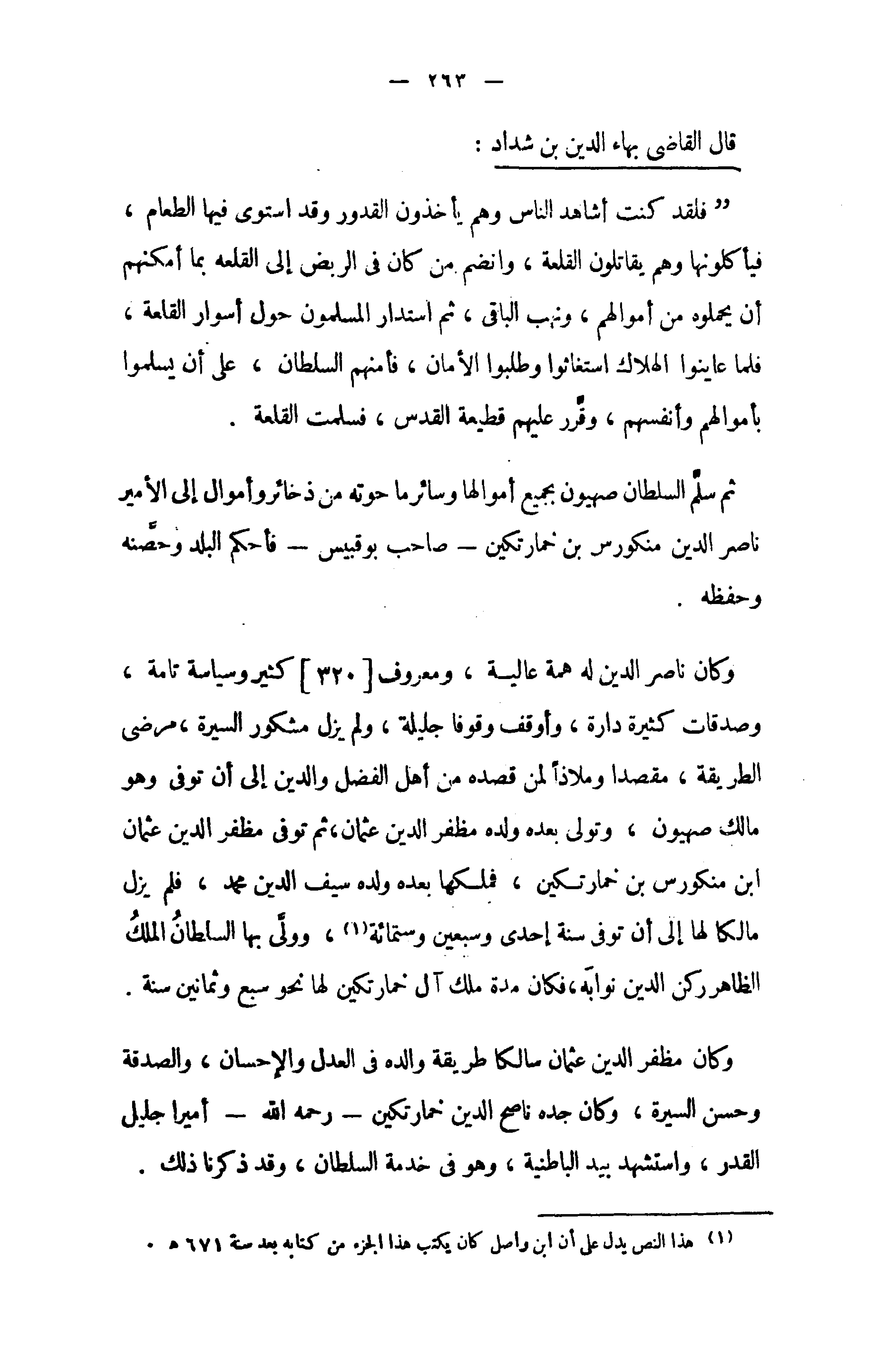 (¬1) هذا النص يدل على أن ابن واصل كان يكتب هذا الجزء من كتابه بعد سنة 671 هـ.