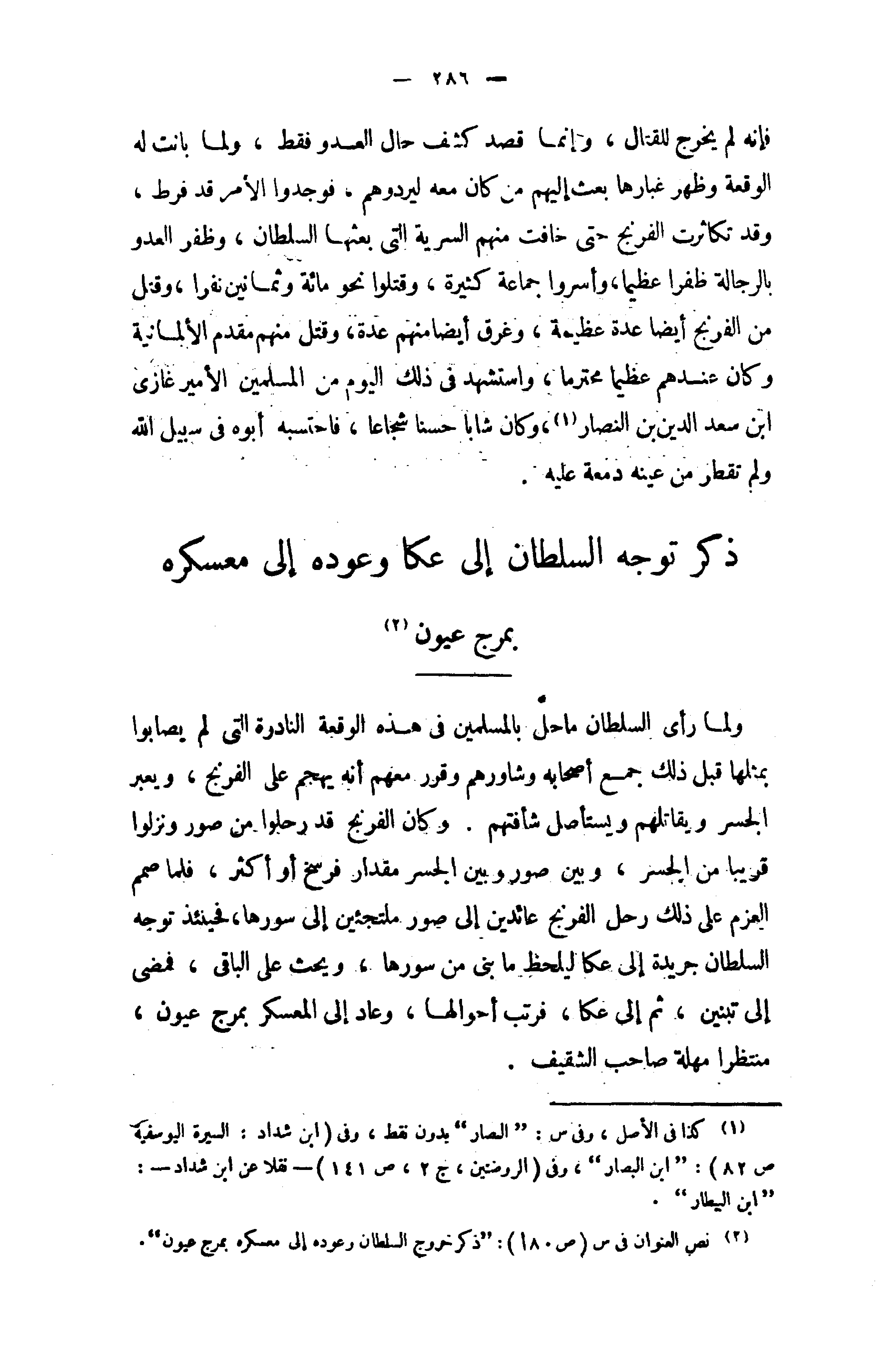 ذكر توجه السلطان إلى عكا وعوده إلى معسكره