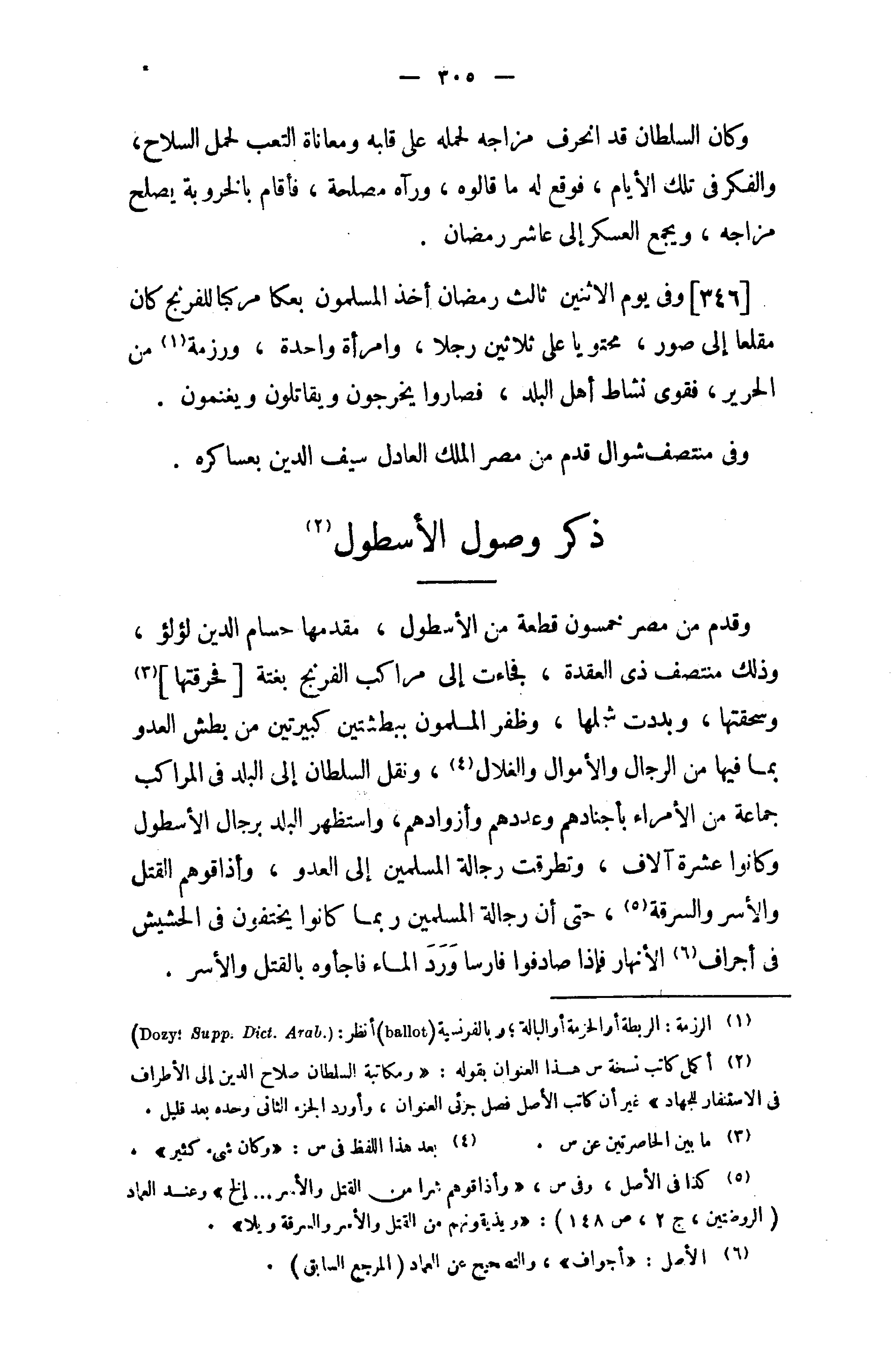 (¬2) أكمل كاتب نسخة س هذا العنوان بقوله: «ومكاتبة السلطان صلاح الدين إلى الأطراف في الاستنفار للجهاد» غير أن كاتب الأصل فصل جزئى العنوان، وأورد الجزء الثانى وحده بعد قليل.