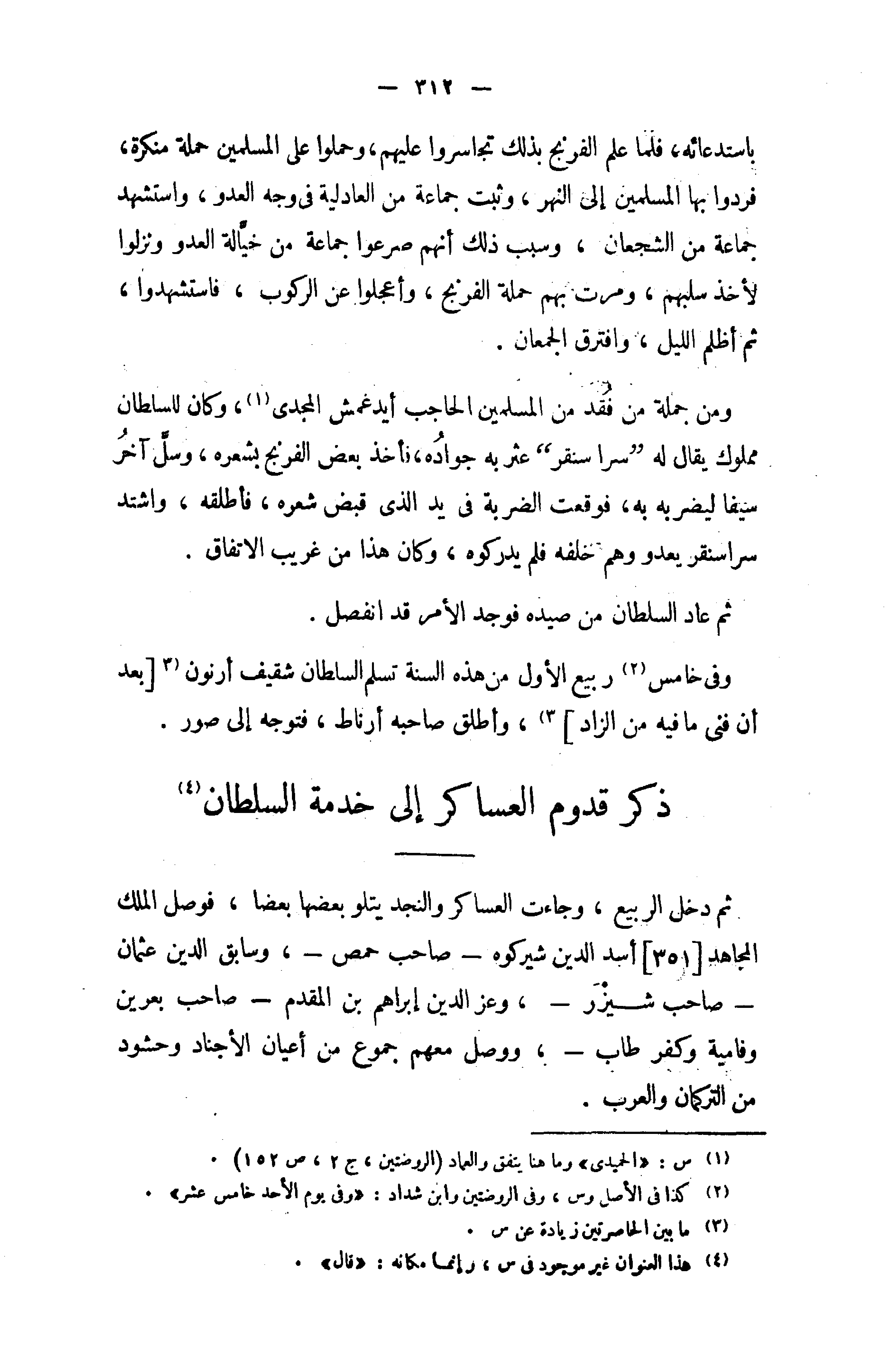 ذكر قدوم العساكر إلى خدمة السلطان (¬4)