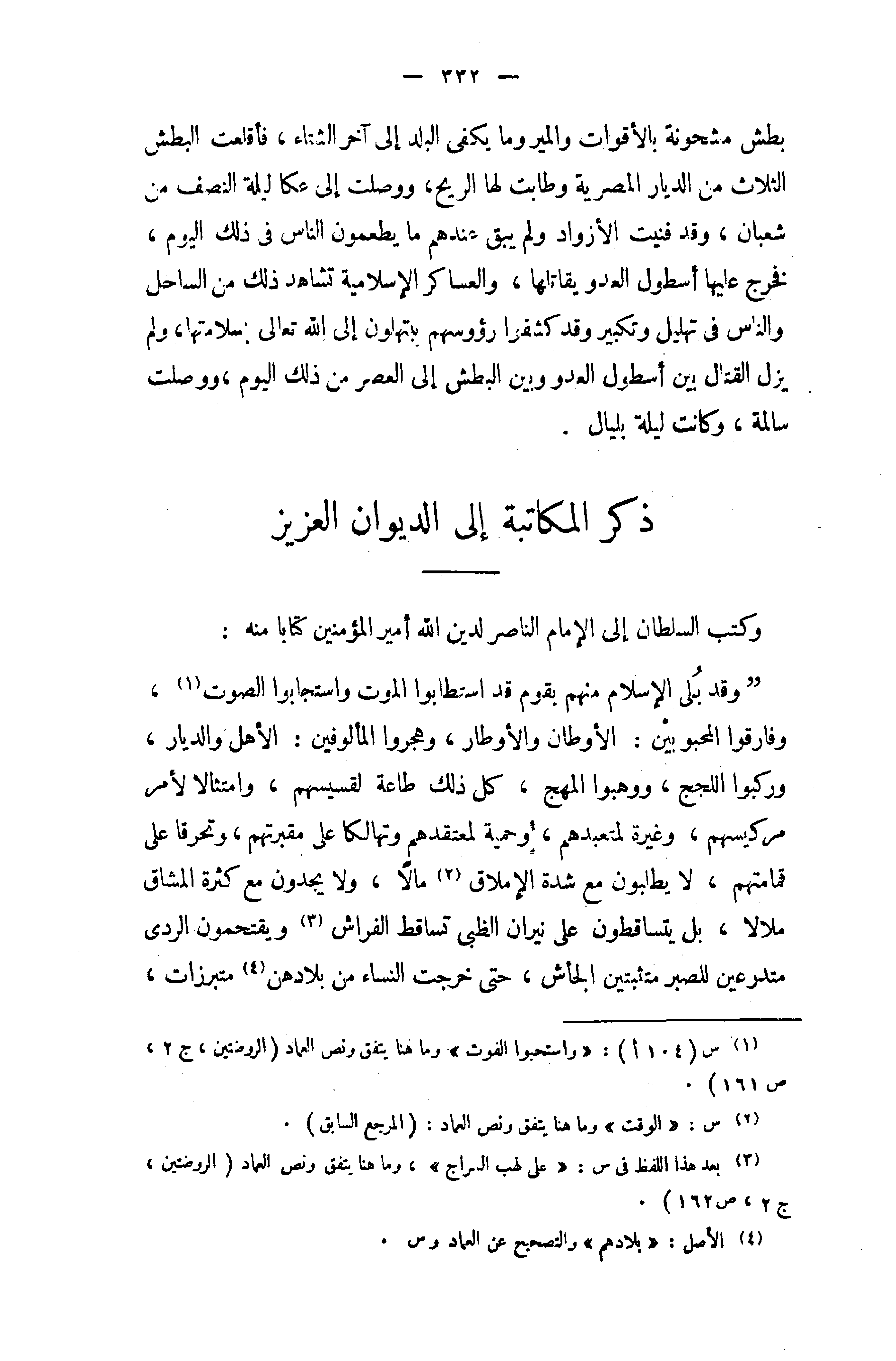 ذكر المكاتبة إلى الديوان العزيز