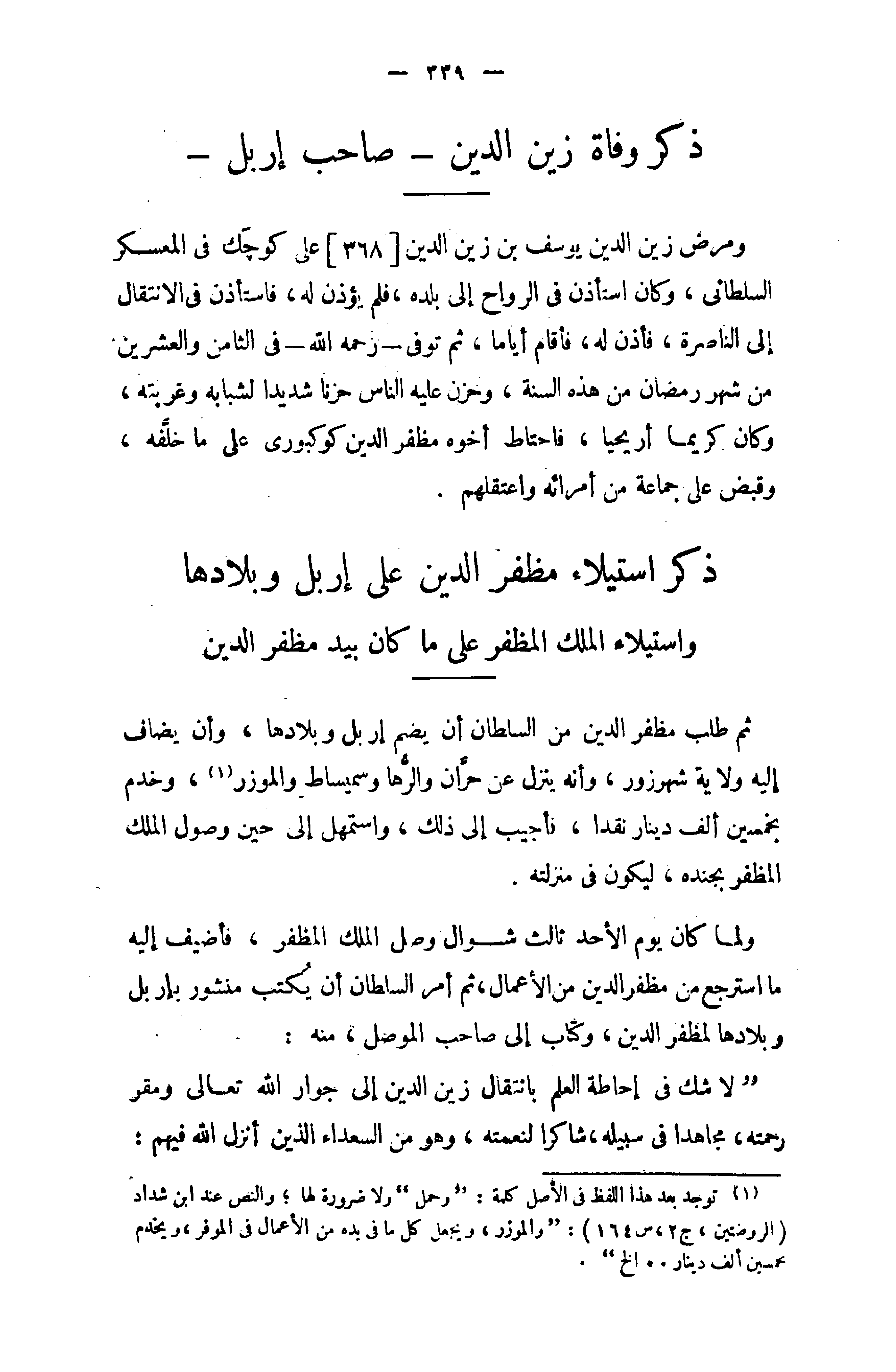 ذكر استيلاء مظفر الدين على إربل وبلادها واستيلاء الملك المظفر على ما كان بيد مظفر الدين