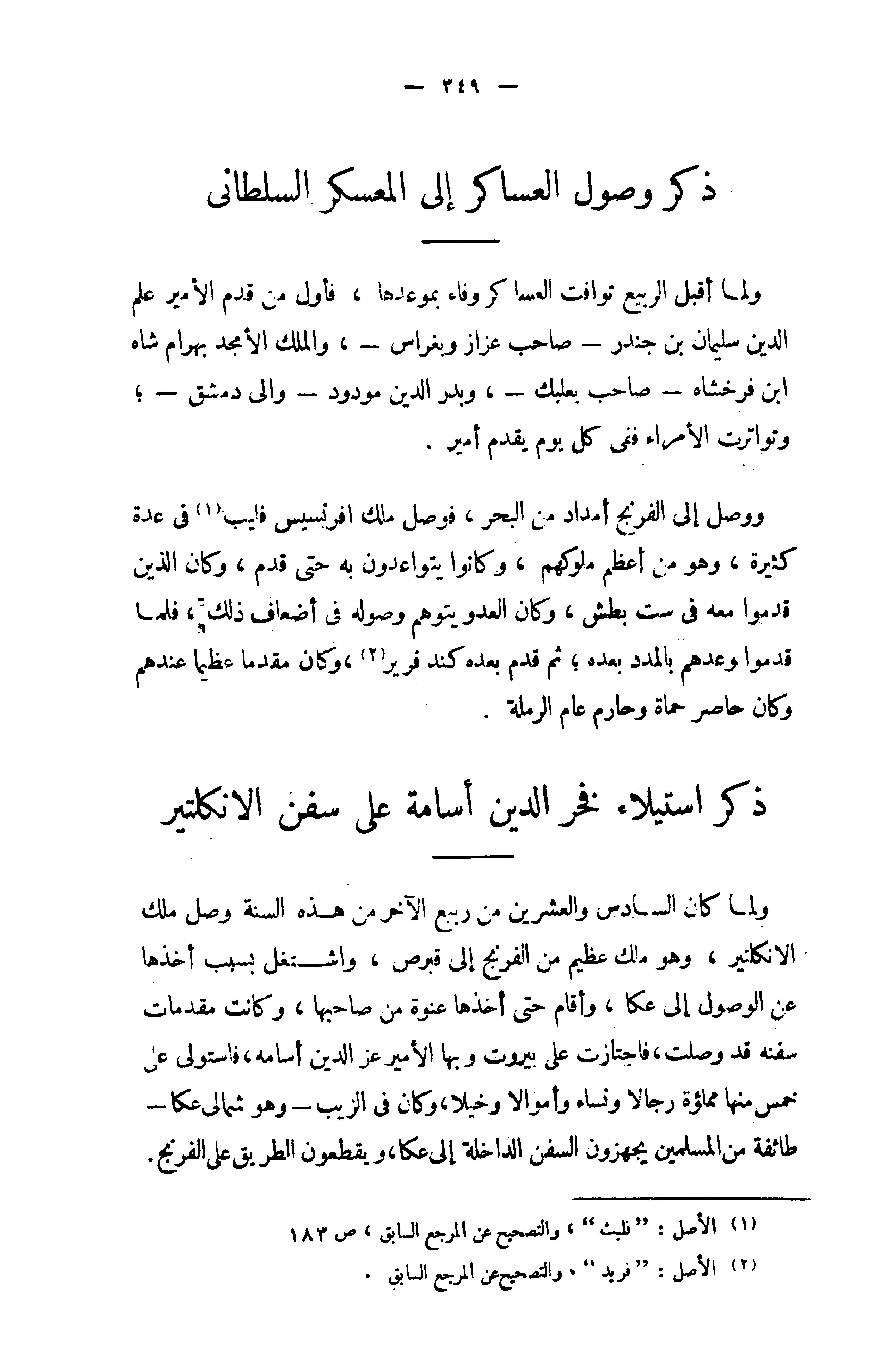 ذكر استيلاء فخر الدين أسامة على سفن الانكلتير