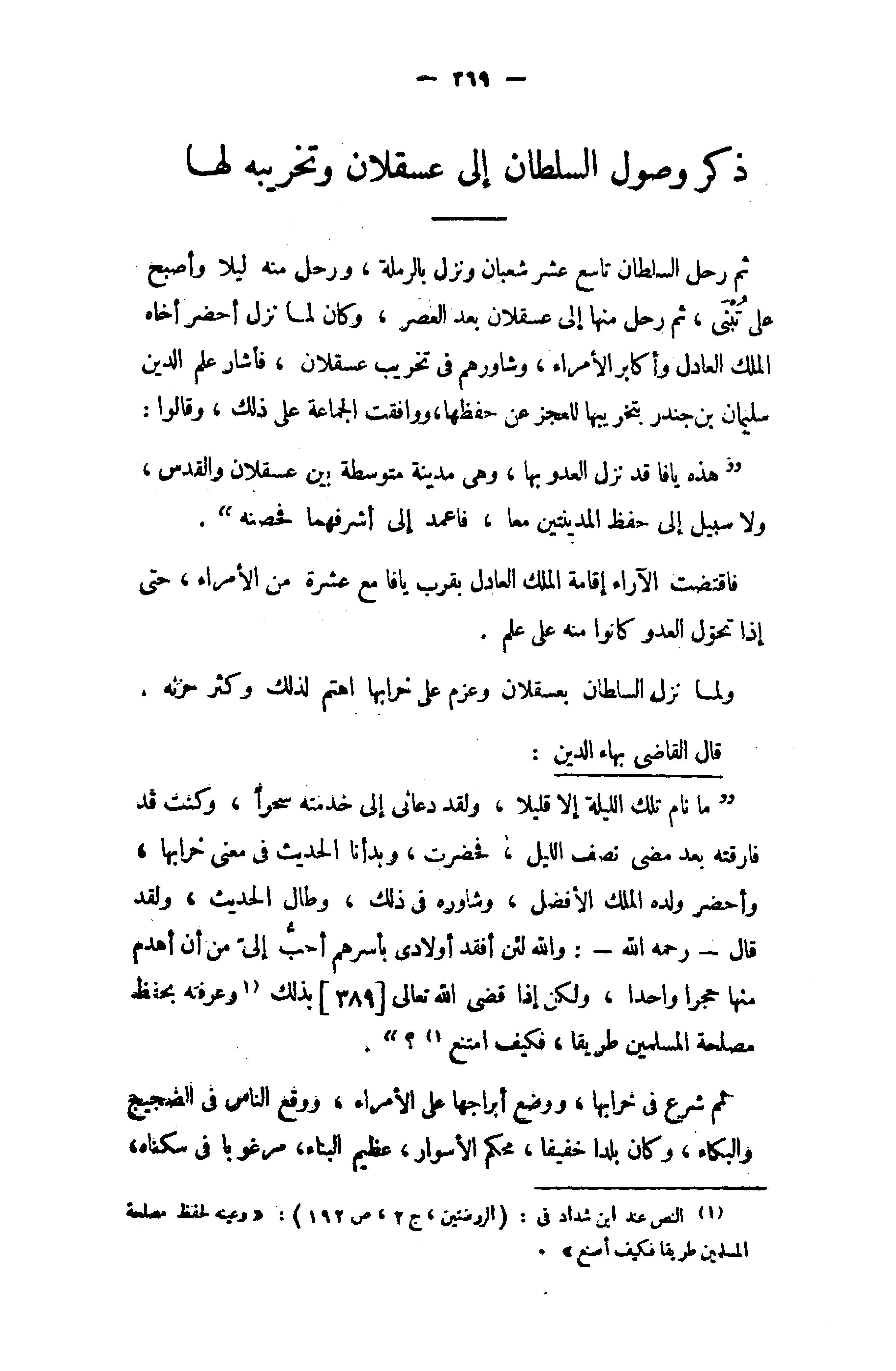 (¬1) النص عند ابن شداد في: (الروضتين، ج 2، ص 192): «وعينه لحفظ مصلحة المسلمين طريقا فكيف أصنع».