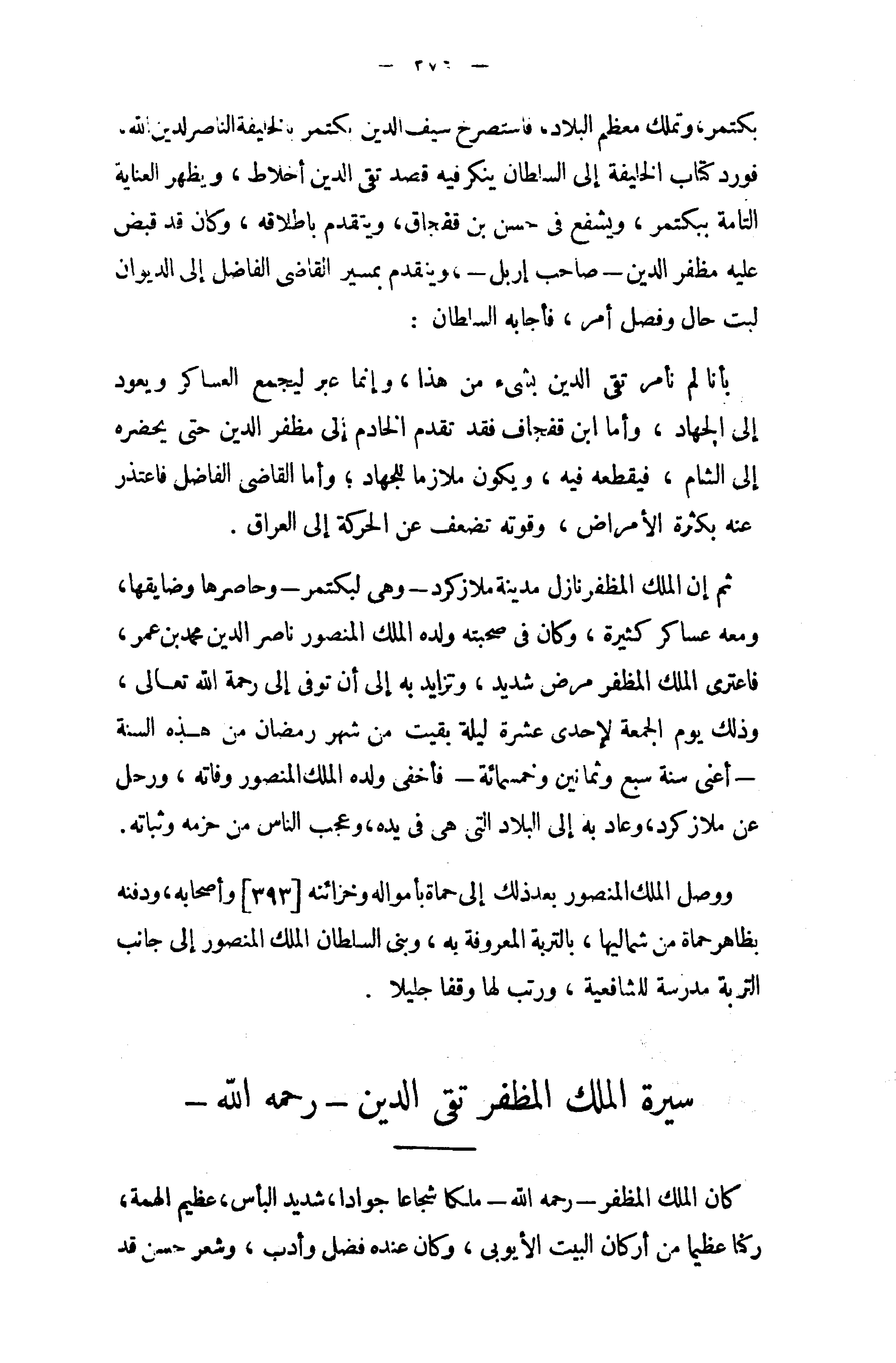 سيرة الملك المظفر تقى الدين - رحمه الله -