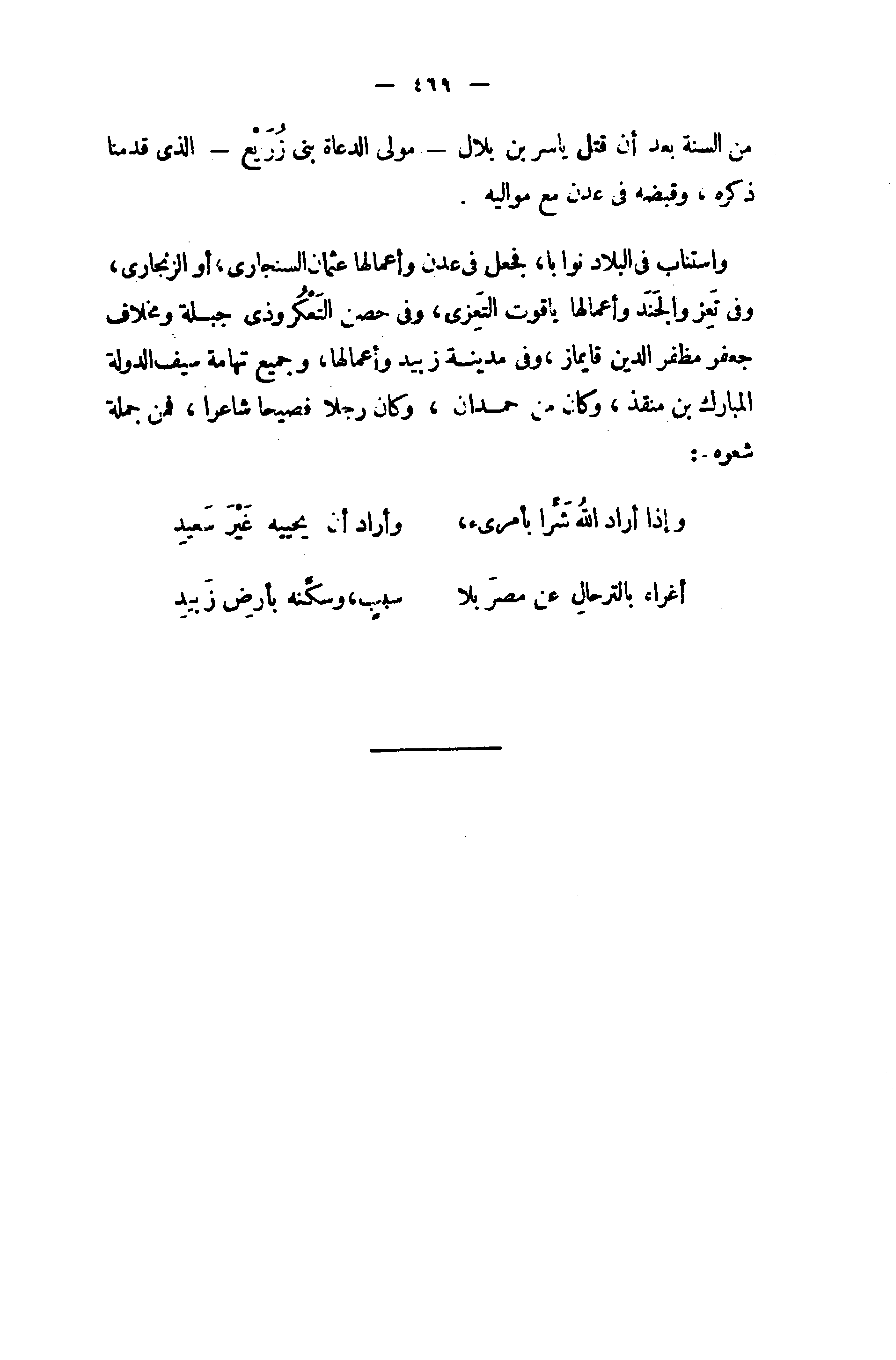 أغراه بالترحال عن مصر بلا ... سبب، وسكّنه بأرض زبيد