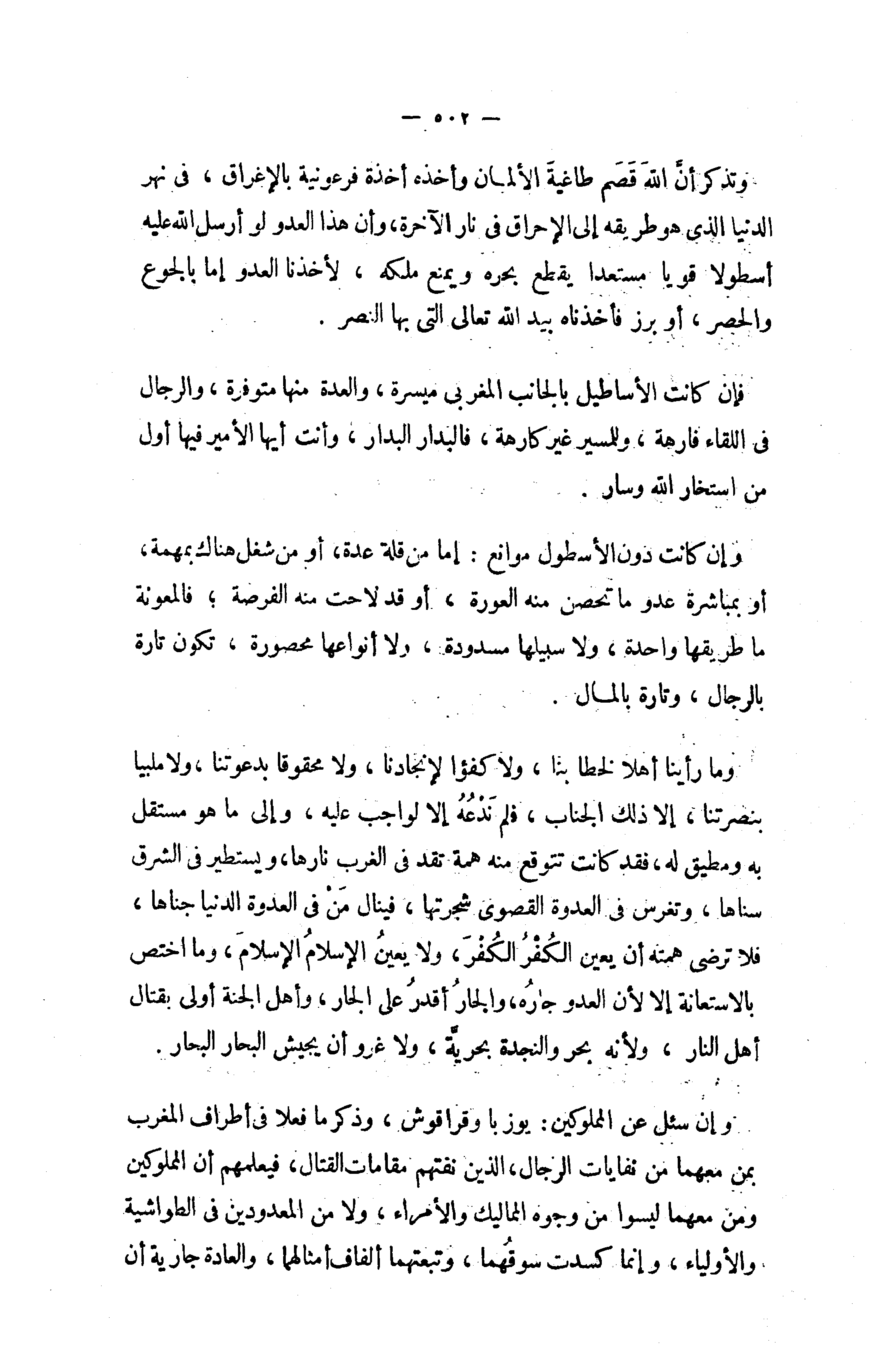 فإن كانت الأساطيل بالجانب المغربى ميسرة، والعدة منها متوفرة، والرجال في اللقاء فارهة، وللمسير غير كارهة، فالبدار البدار، وأنت أيها الأمير فيها أول من استخار الله وسار.
