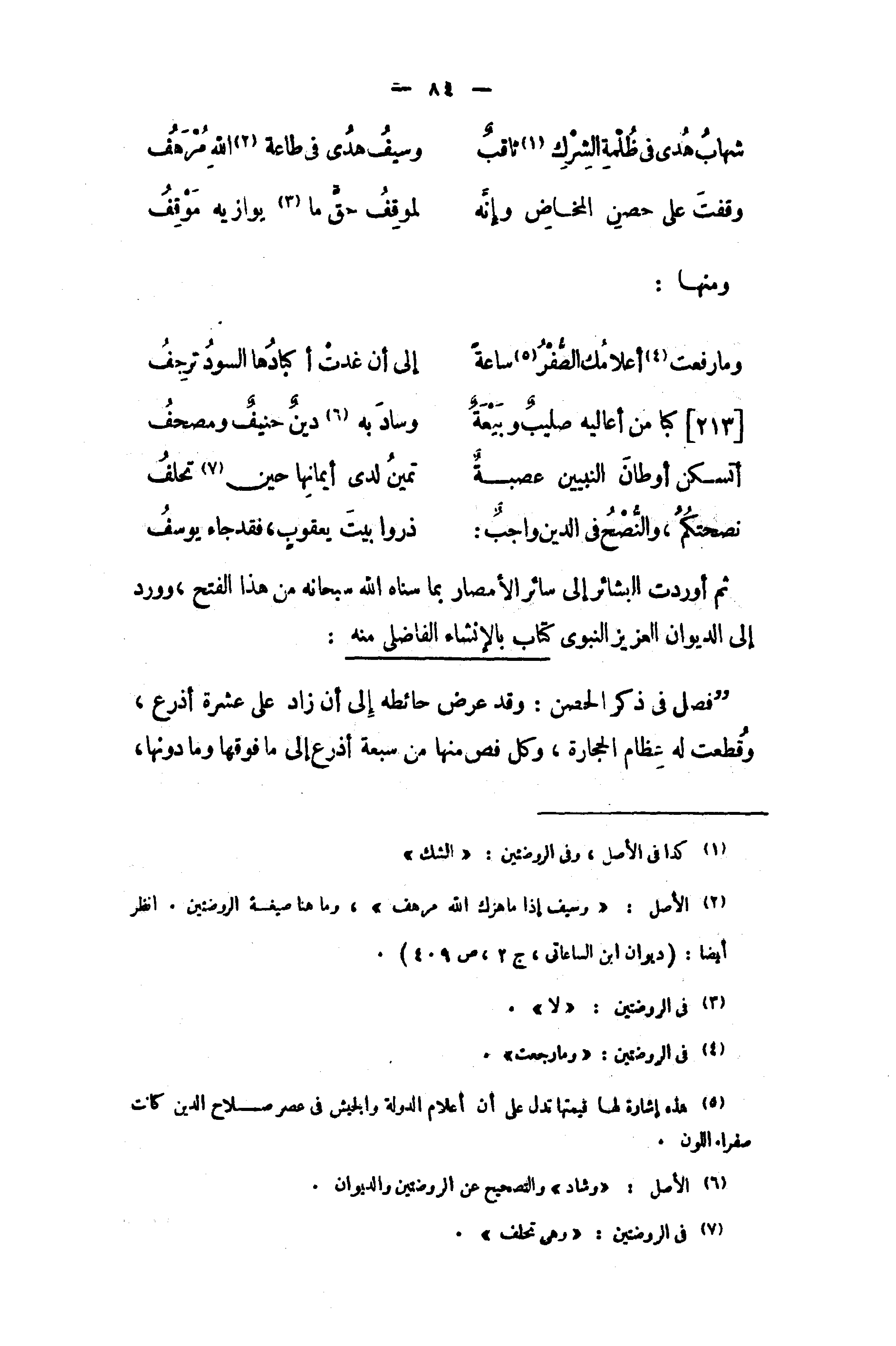 (¬2) الأصل: «وسيف إذا ما هزك الله مرهف»، وما هنا صيغة الروضتين. انظر أيضا: (ديوان ابن الساعاتى، ج 2، ص 409).