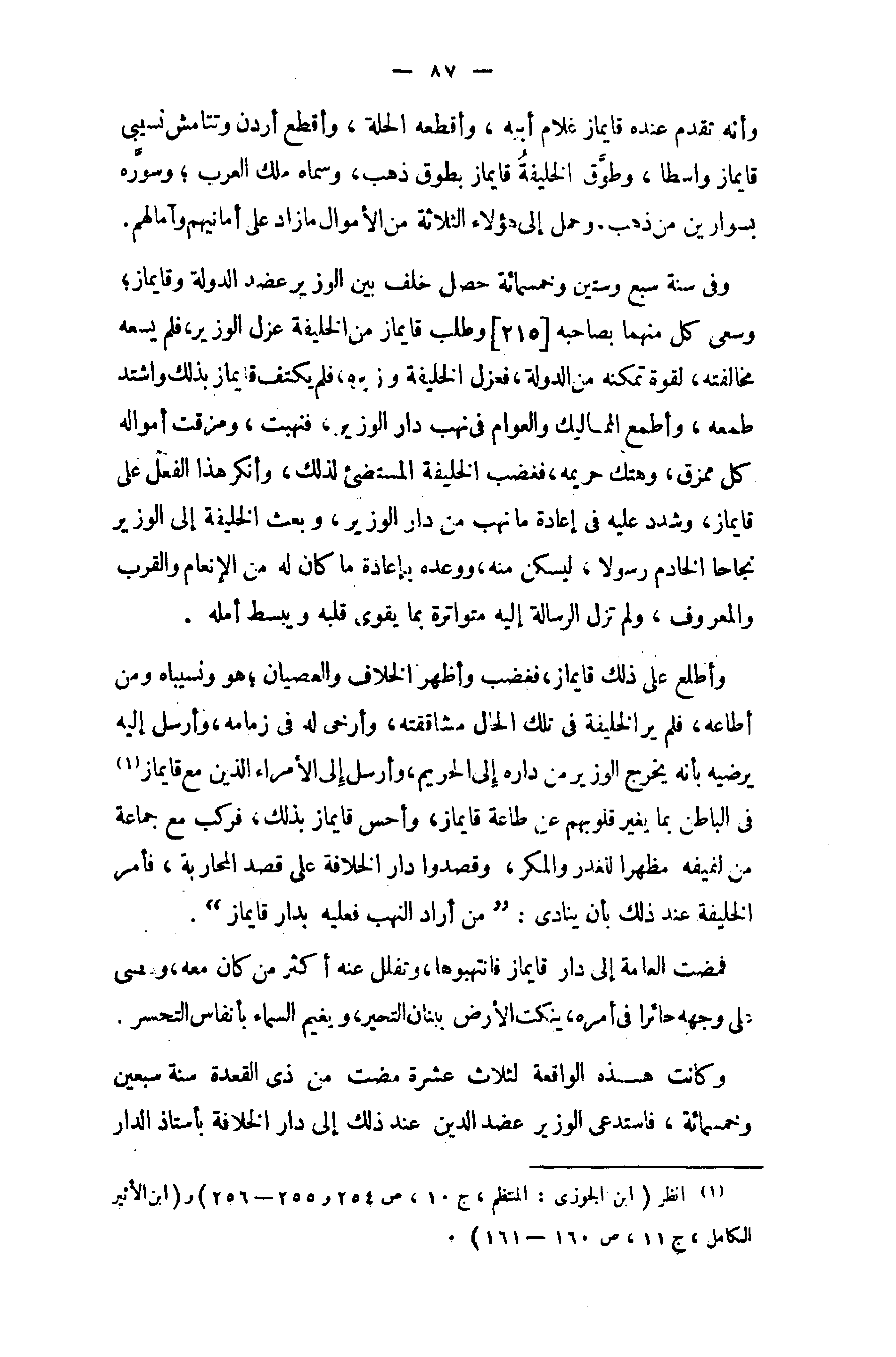 (¬1) انظر (ابن الجوزى: المنتظم، ج 10، ص 254 و 255 - 256) و (ابن الأثير الكامل، ج 11، ص 160 - 161).