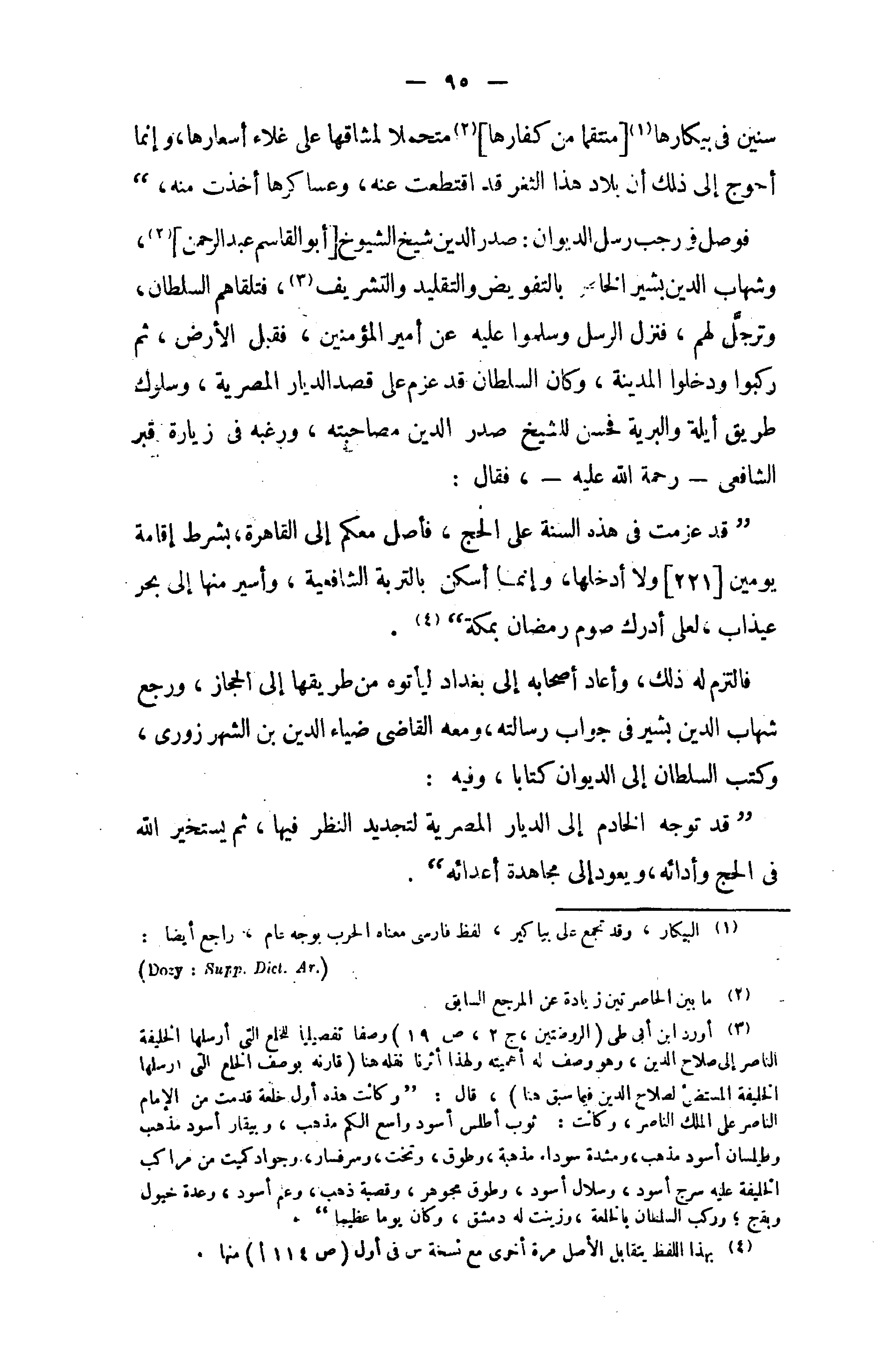 فالتزم له ذلك، وأعاد أصحابه إلى بغداد ليأتوه من طريقها إلى الحجاز، ورجع شهاب الدين بشير في جواب رسالته، ومعه القاضى ضياء الدين بن الشهر زورى، وكتب السلطان إلى الديوان كتابا، وفيه: