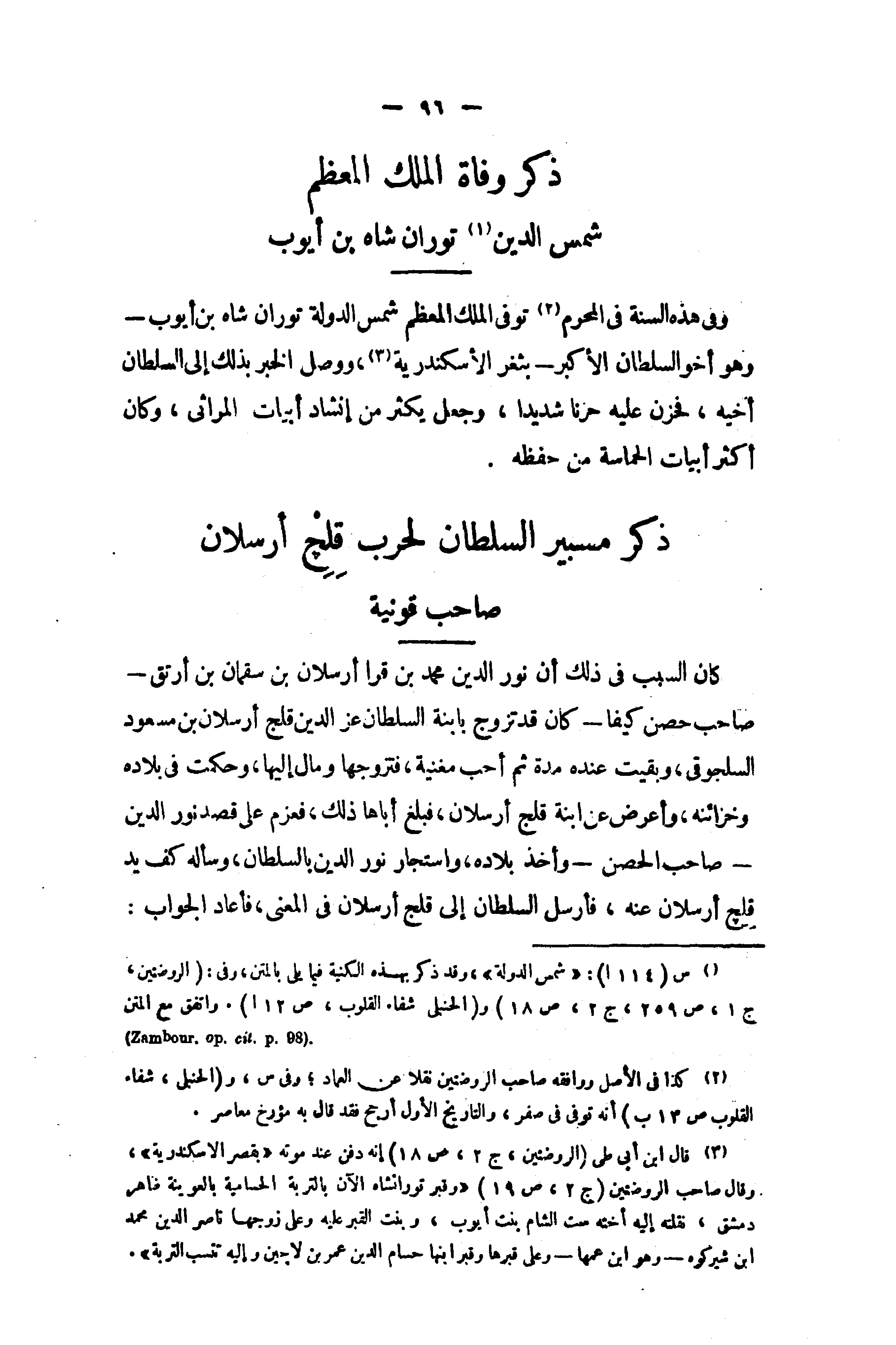(¬1) س (114 ا): «شمس الدولة»، وقد ذكر بهذه الكنية فيما يلى بالمتن، وفى: (الروضتين، ج 1، ص 259، ج 2، ص 18) و (الحنبلى شفاء القلوب، ص 12 ا). واتفق مع المتن (Zambour .op .cit . P. 98) .