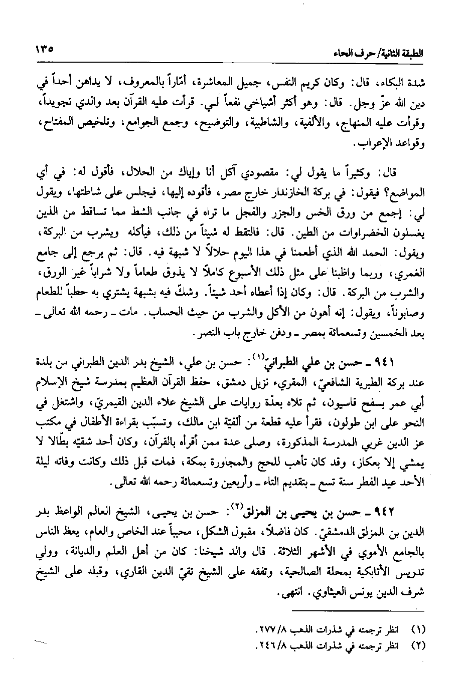 حسن بن يحيى، الشيخ العالم الواعظ بدر الدين بن المزلق الدمشقي. كان فاضلاً، مقبول الشكل، محبباً عند الخاص والعام، يعظ الناس بالجامع الأموي في الأشهر الثلاثة. قال والد شيخنا: كان من أهل العلم والديانة، وولي تدريس الأتابكية بمحلة الصالحية، وتفقه على الشيخ تقي الدين القاري، وقبله على الشيخ شرف الدين يونس العيثاوي. انتهى.