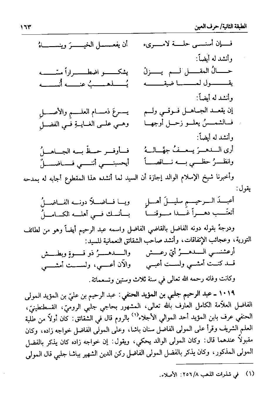 ودرجه بقوله دونه الفاضل بالقاضي الفاضل واسمه عبد الرحيم أيضاً وهو من لطائف التورية، وعجائب الإتفاقات، وأنشد صاحب الشقائق النعمانية للسيد: