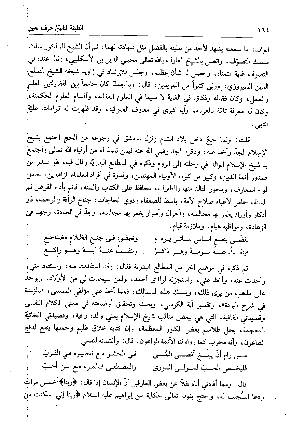 قلت: ولما حج دخل بلاد الشام ونزل بدمشق في رجوعه من الحج اجتمع بشيخ الإسلام الجد وأخذ عنه، وذكره الجد رضي الله عنه فيمن تلمذ له من أولياء الله تعالى واجتمع به شيخ الإسلام الوالد في رحلته إلى الروم وذكره في المطالع البدرية وقال فيه، هو صدر من صدور أئمة الدين، وكبير من كبراء الأولياء المهتدين، وقدوة في أفراد العلماء الزاهدين، حامل لواء المعارف، ومحور التالد منها والطارف، محافظ على الكتاب والسنة، قائم بأداء الفرض ثم السنة، حامل لأعباء صلاح الأمة، باسط للضعفاء وذوي الحاجات، جناح الرأفة والرحمة، ذو أذكار وأوراد يعمر بها مجالسه، وأحوال وأسرار يغمر بها مجالسه، وجد في العبادة، وجهد في الزهادة، ومواظبة هيام، وملازمة قيام.