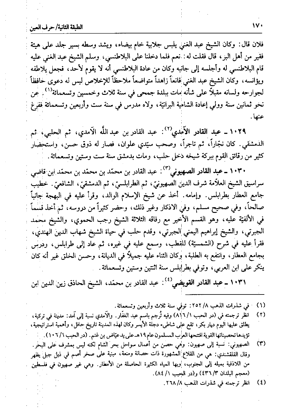 فلان قال: وكان الشيخ عبد الغني يلبس جلابية خام بيضاء، ويشد وسطه بسير جلد على هيئة فقير من أهل البر، قال فقلت له: نعم فلما دخلنا على البلاطنسي، وسلم الشيخ عبد الغني عليه قام البلاطنسي له وأجلسه إلى جانبه وكان من عادة البلاطنسي أنه لا يقوم لأحد، فجعل يلاطفه ويؤانسه، وكان الشيخ عبد الغني قانعاً زاهداً متواضعاً ملاحظاً للإخلاص ليس له دعوى حافظاً لجوارحه ولسانه مقبلاً على شأنه مات ببلدة جمحى في سنة ثلاث وخمسين وتسعمائة. عن نحو ثمانين سنة وولي إعادة الشامية البرانية، ولاه مدرس في سنة ست وأربعين وتسعمائة ففرغ عنها.