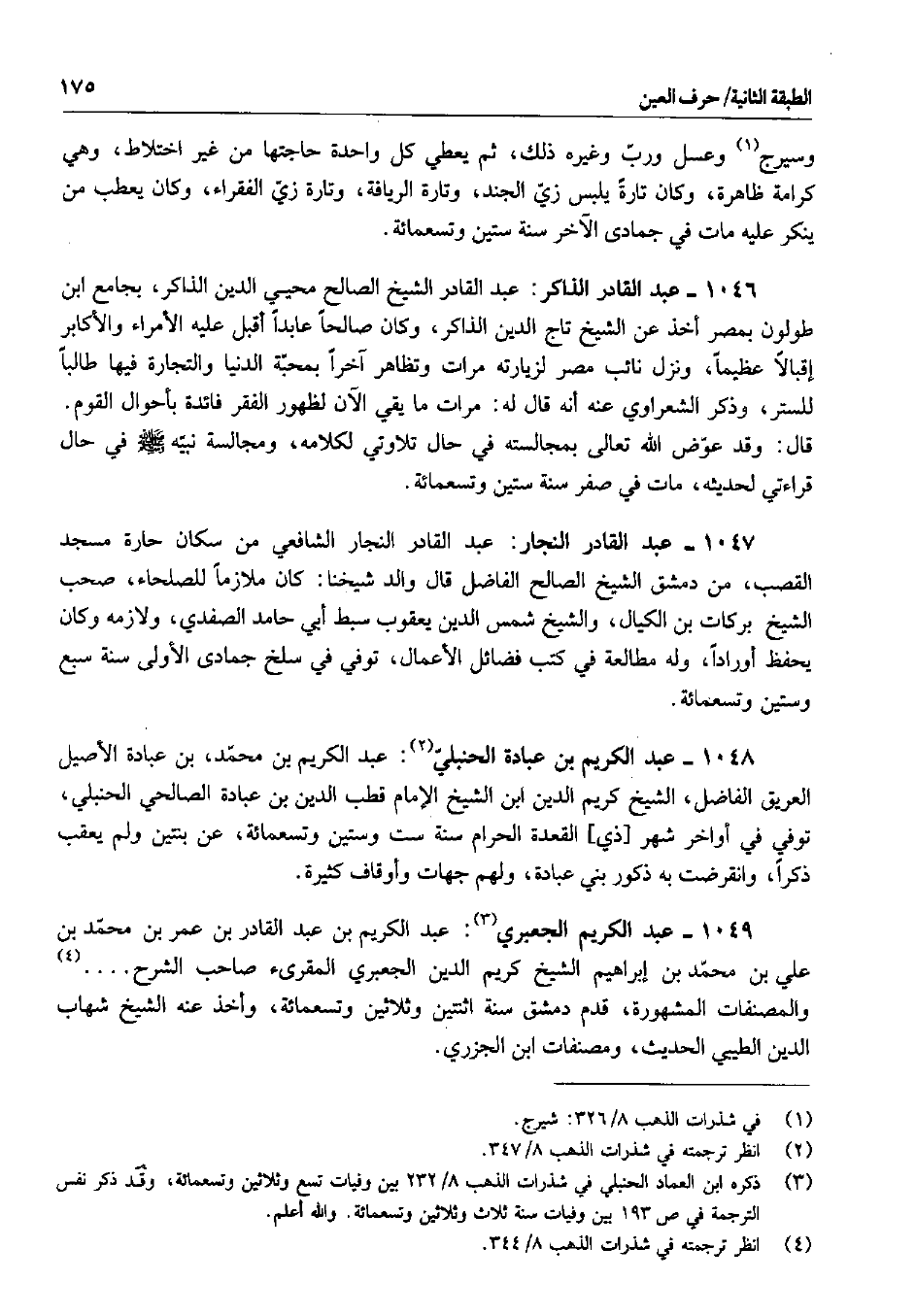 وسيرج وعسل ورب وغيره ذلك، ثم يعطي كل واحدة حاجتها من غير اختلاط، وهي كرامة ظاهرة، وكان تارة يلبس زي الجند، وتارة الريافة، وتارة زي الفقراء، وكان يعطب من ينكر عليه مات ذي جمادى الآخر سنة ستين وتسعمائة.