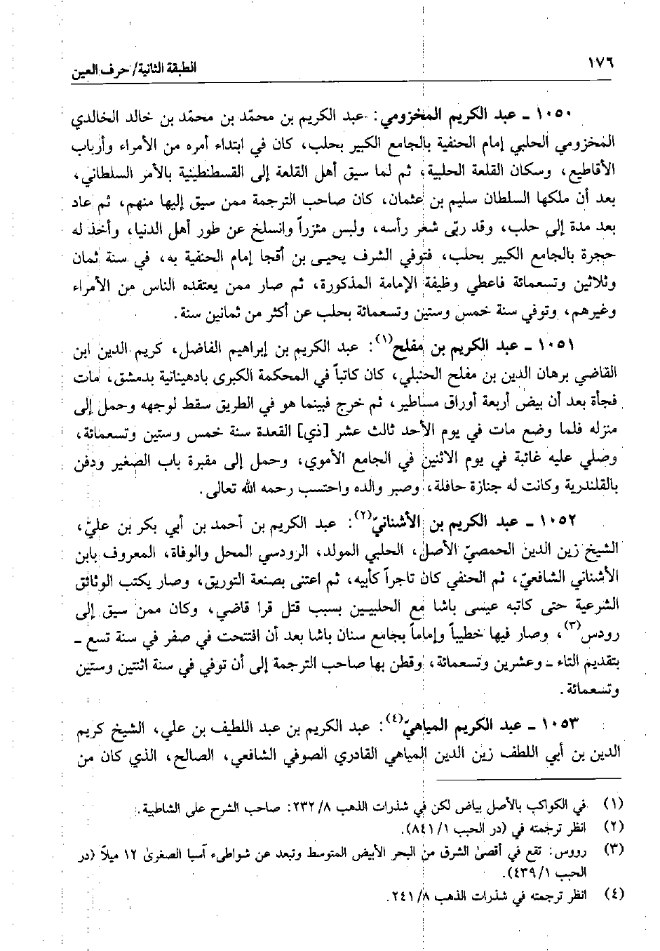 عبد الكريم بن محمد بن محمد بن خالد الخالدي المخزومي الحلبي إمام الحنفية بالجامع الكبير بحلب، كان في ابتداء أمره من الأمراء وأرباب الأقاطيع، وسكان القلعة الحلبية، ثم لما سيق أهل القلعة إلى القسطنطينية بالأمر السلطاني، بعد أن ملكها السلطان سليم بن عثمان، كان صاحب الترجمة ممن سيق إليها منهم، ثم عاد بعد مدة إلى حلب، وقد ربى شعر رأسه، ولبس مئزراً وانسلخ عن طور أهل الدنيا، وأخذ له حجرة بالجامع الكبير بحلب، فتوفي الشرف يحيى بن أقجا إمام الحنفية به، في سنة ثمان وثلاثين وتسعمائة فأعطي وظيفة الإمامة المذكورة، ثم صار ممن يعتقده الناس من الأمراء وغيرهم، وتوفي سنة خمس وستين وتسعمائة بحلب عن أكثر من ثمانين سنة.