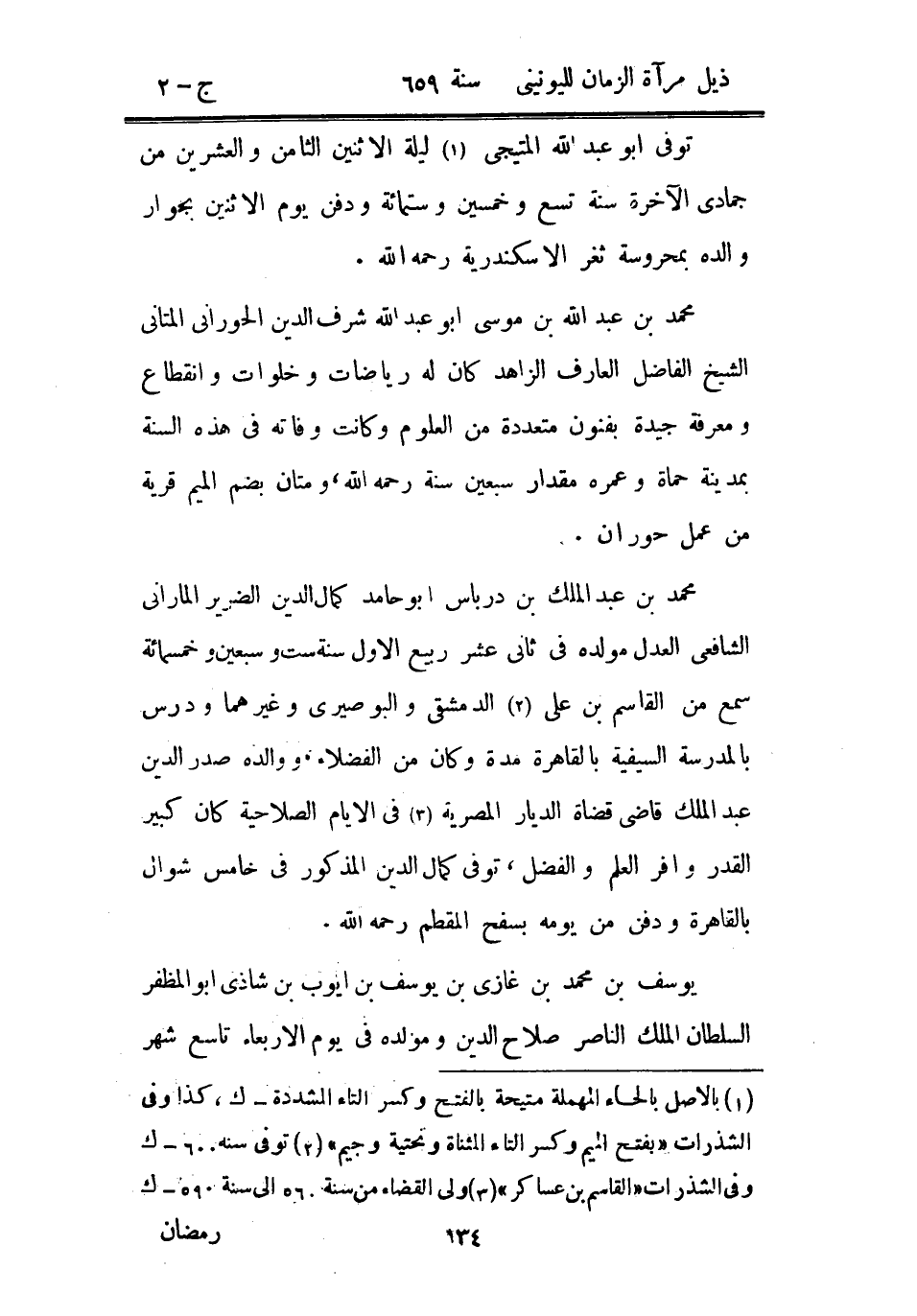 محمد بن عبد الله بن موسى أبو عبد الله شرف الدين الحوراني المتاني الشيخ الفاضل العارف الزاهد كان له رياضات وخلوات وانقطاع ومعرفة جيدة بفنون متعددة من العلوم وكانت وفاته في هذه السنة بمدينة حماة وعمره مقدار سبعين سنة رحمه الله، ومتان بضم الميم قرية من عمل حوران.