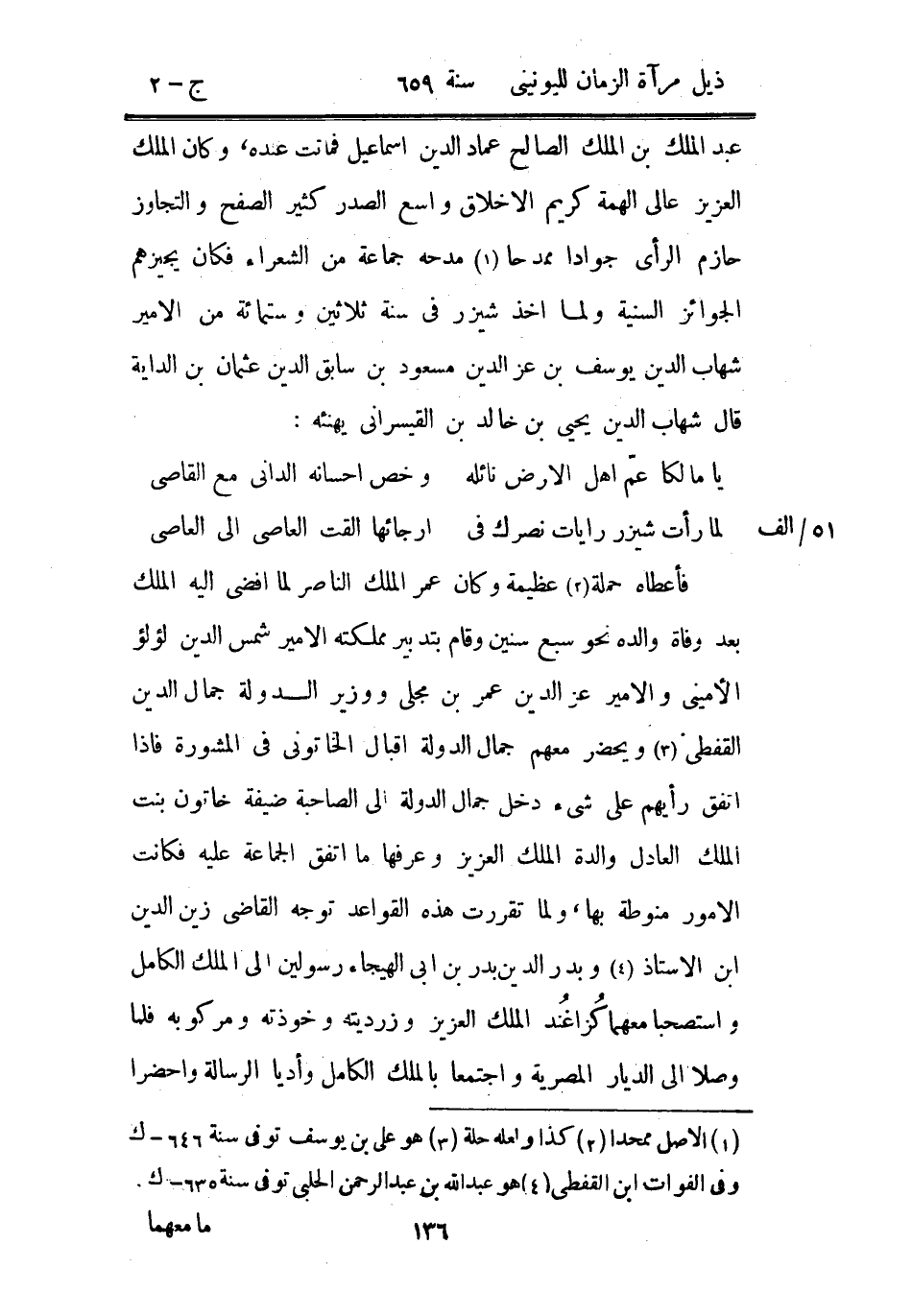 عبد الملك بن الملك الصالح عماد الدين إسماعيل فماتت عنده، وكان الملك العزيز عالي الهمة كريم الأخلاق واسع الصدر كثير الصفح والتجاوز حازم الرأي جواداً ممدحاً مدحه جماعة من الشعراء فكان يجيزهم الجوائز السنية ولما أخذ شيزر في سنة ثلاثين وستمائة من الأمير شهاب الدين يوسف بن عز الدين مسعود بن سابق الدين عثمان بن الداية قال شهاب الدين يحيى بن خالد بن القيسراني يهنئه: