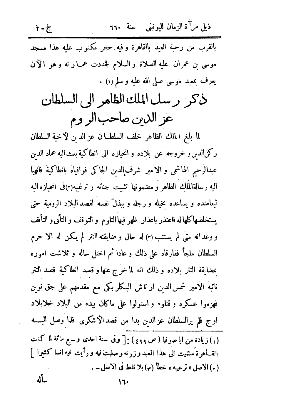 ذكر رسل الملك الظاهر إلى السلطان عز الدين