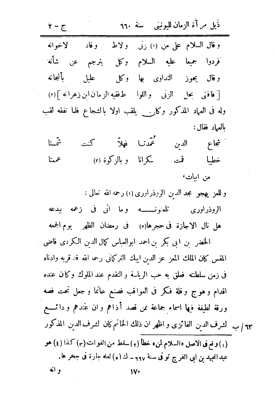 ومن أبيات، وللعز يهجو مجد الدين الروذراوري رحمه الله تعالى: