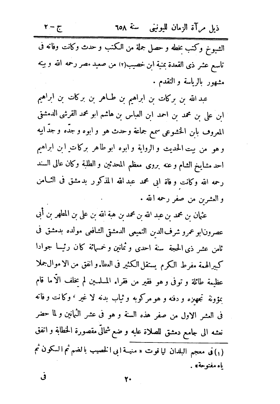 عثمان بن محمد بن عبد الله بن محمد بن هبة الله بن علي بن المطهر بن أبي عصرون أبو عمرو شرف الدين التميمي الدمشقي الشافعي مولده بدمشق في ثامن عشر ذي الحجة سنة إحدى وثمانين وخمسمائة كان رئيسا جواداً كبير الهمة مفرط الكرم يستقل الكثير من العطاء وأنفق من الأموال جملاً عظيمة طائلة وتوفي وهو فقير من فقراء المسلمين لم يخلف إلا ما قام بمؤونة تجهيزه ودفنه وهو مركوبه وثيابه بدنه لا غير، وكانت وفاته في العشر الأول من صفر هذه السنة وهو في عشر الثمانين ولما حضر نعشه إلى جامع دمشق للصلاة عليه وضع شمالي مقصورة الخطابة واتفق