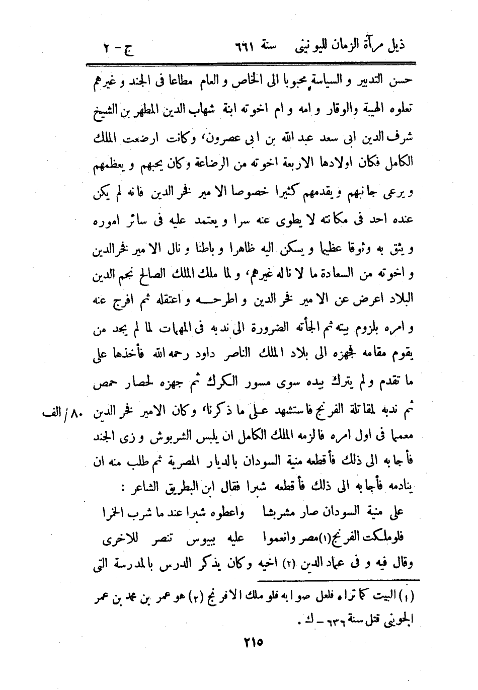 حسن التدبير والسياسة محبوباً إلى الخاص والعام مطاعاً في الجند وغيرهم تعلوه الهيبة والوقار وأمه وأم أخوته ابنة شهاب الدين المطهر بن الشيخ شرف الدين أبي سعد عبد الله بن أبي عصرون، وكانت أرضعت الملك الكامل فكان أولادها الأربعة أخوته من الرضاعة وكان يحبهم ويعظمهم ويرى جانبهم ويقدمهم كثيراً خصوصاً الأمير فخر الدين فإنه لم يكن عنده في مكانته لا يطوي عنه سراً ويعتمد عليه في سائر أموره ويثق به وثوقاً عظيماً ويسكن إليه ظاهراً وباطناً ونال الأمير فخر الدين وأخوته من السعادة ما لا ناله غيرهم، ولما ملك الملك الصالح نجم الدين البلاد أعرض عن الأمير فخر الدين وأطرحه واعتقله ثم أفرج عنه وأمره بلزوم بيته ثم ألجأته الضرورة إلى ندبه في المهمات لما لم يجد من يقوم مقامه فجهزه إلى بلاد الملك الناصر داود رحمه الله فأخذها على ما تقدم ولم يترك بيده سوى مسور الكرك ثم جهزه لحصار حمص ثم ندبه لمقاتلة الفرنج فاستشهد على ما ذكرنا، وكان الأمير فخر الدين معماً في أول أمره فألزمه الملك الكامل أن يلبس الشربوش وزي الجند فأجابه إلى ذلك فأقطعه منية السودان بالديار المصرية ثم طلب منه أن ينادمه فأجابه إلى ذلك فأقطعه شبراً فقال ابن البطريق الشاعر: