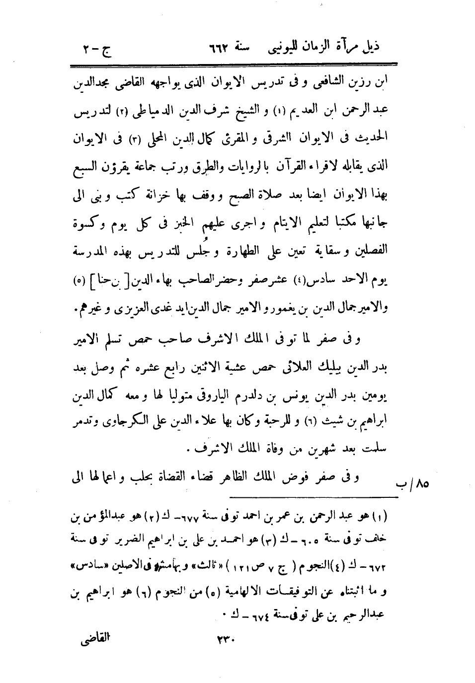 وفي صفر فوض الملك الظاهر قضاء القضاة بحلب وأعمالها إلى