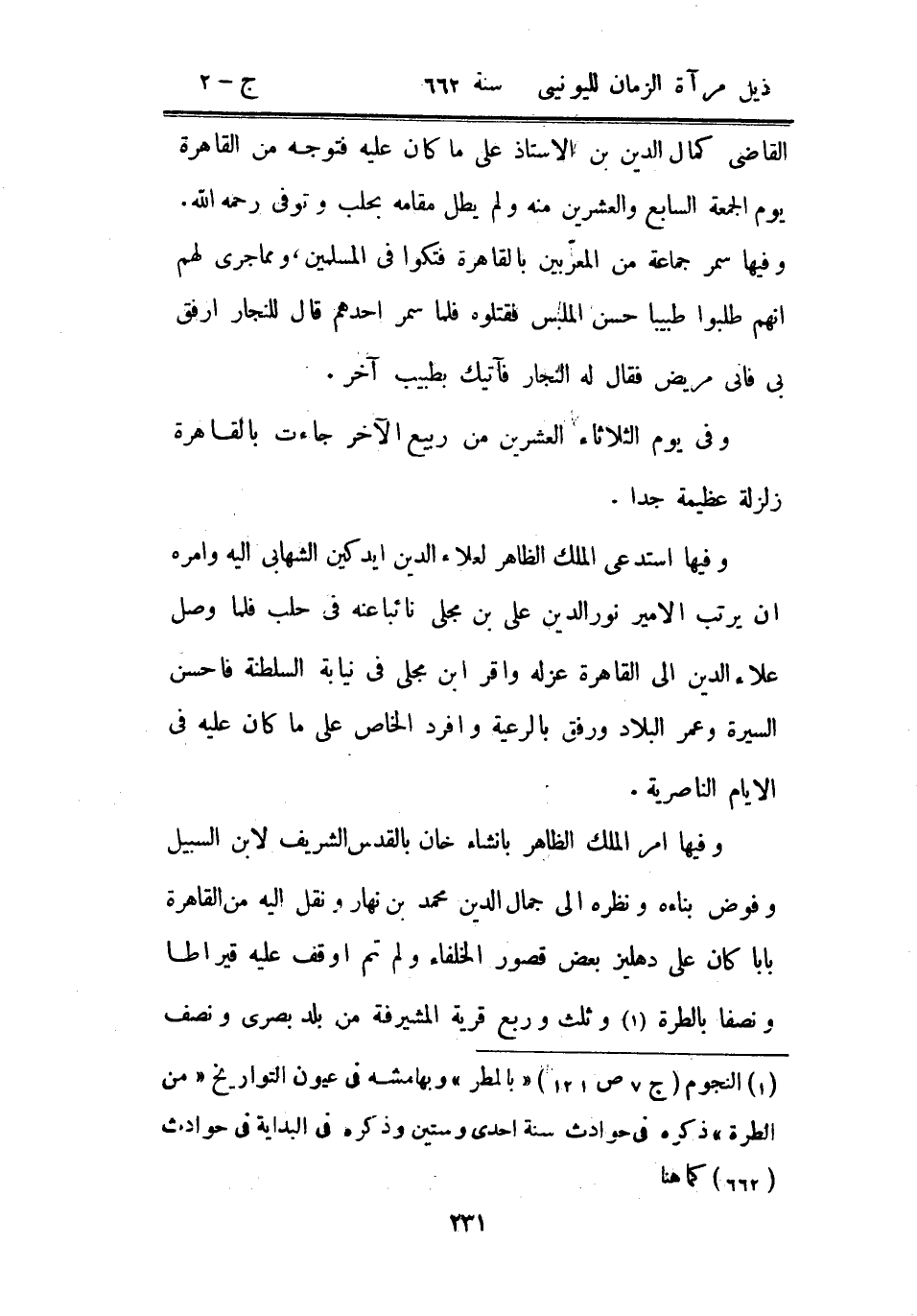 القاضي كمال الدين بن الأستاذ علي ما كان عليه فتوجه من القاهرة يوم الجمعة السابع والعشرين منه ولم يطل مقامه بحلب وتوفي رحمه الله. وفيها سمر جماعة من المعربين بالقاهرة فتكوا في المسلمين، ومما جرى لهم أنهم طلبوا طبيباً حسن الملبس فقتلوه فلما سمر أحدهم للنجار أرفق بي فإني مريض فقال له النجار فآتيك بطبيب آخر.