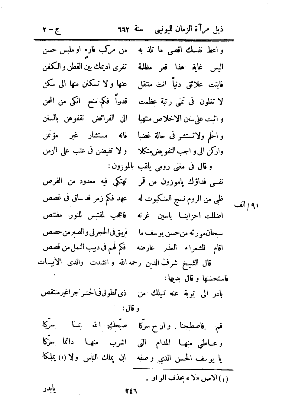 قال الشيخ شرف الدين رحمه الله ونشدت والدي الأبيات فاستحسنها وقال بديها: