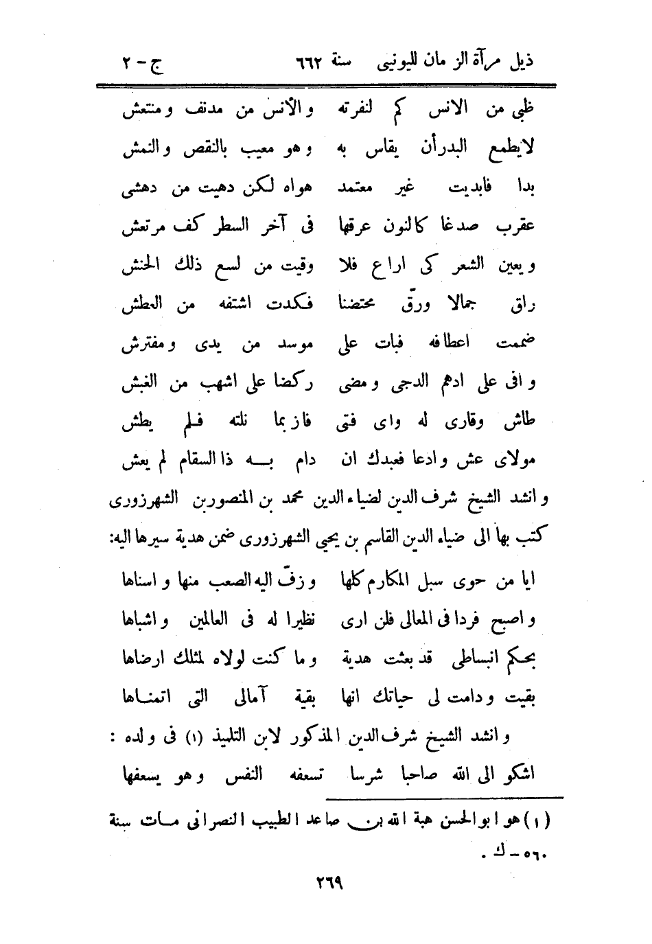 وأنشد الشيخ شرف الدين لضياء الدين محمد بن المنصور بن الشهرزوري كتب بها إلى ضياء الدين القاسم بن يحيى الشهرزوري ضمن هدية سيرها إليه: