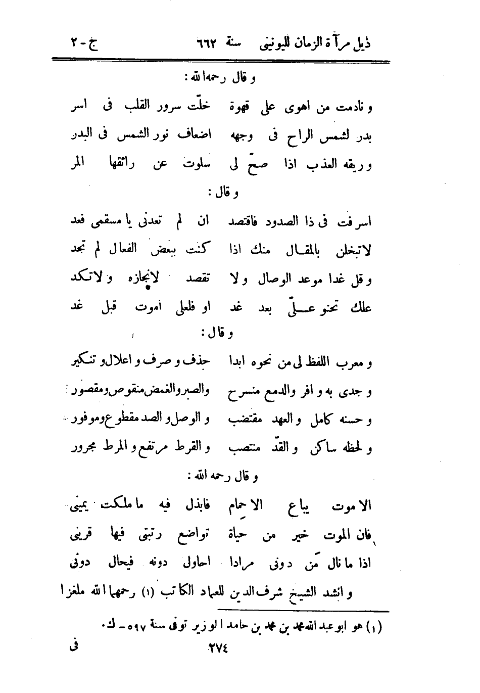 وأنشد الشيخ شرف الدين للعماد الكاتب رحمهما الله ملغزاً