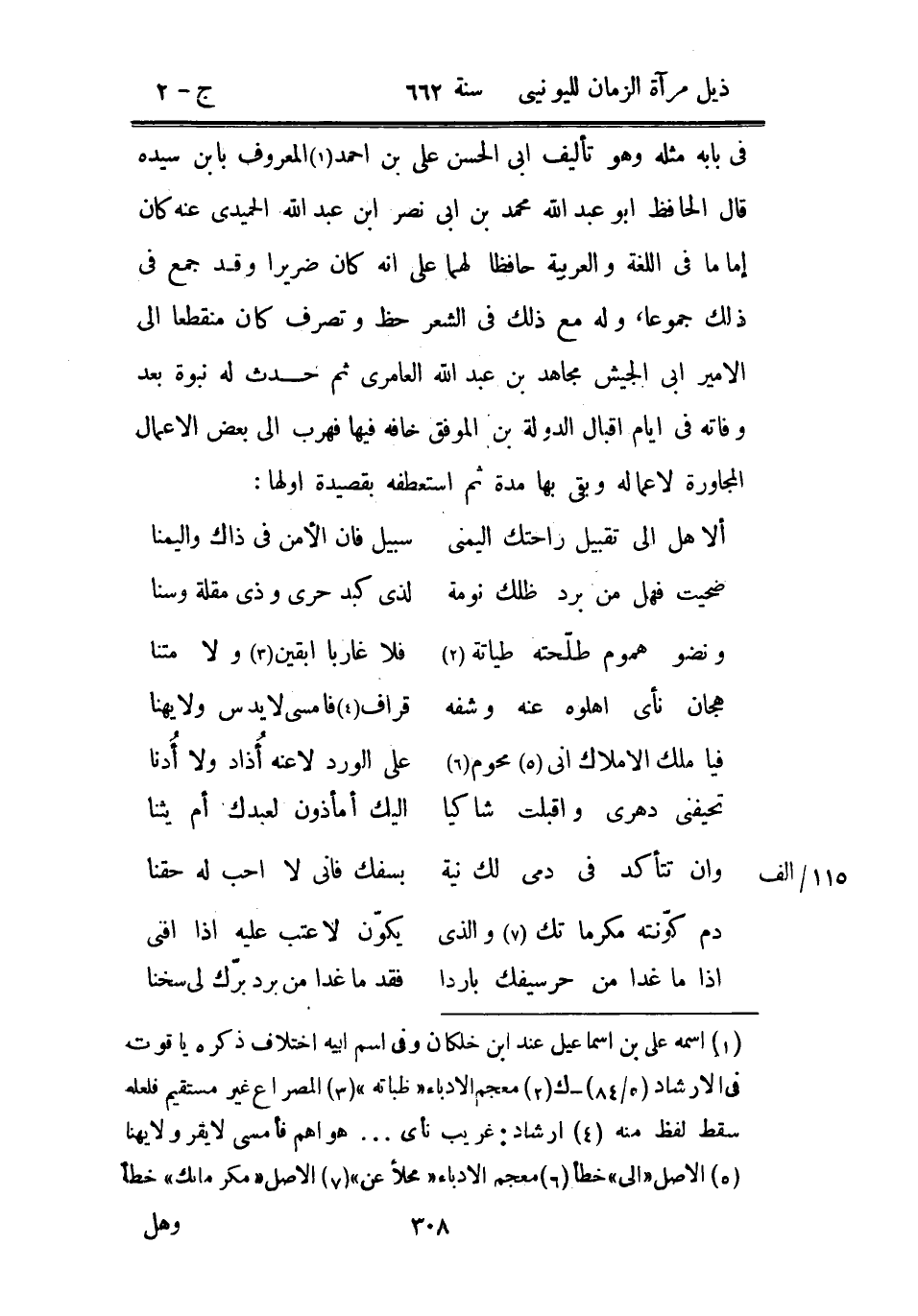 في بابه مثله وهو تأليف أبي الحسن علي بن أحمد المعروف بابن سيده قال الحافظ أبو عبد الله محمد بن أبي نصر ابن عبد الله الحميدي عنه كان إماماً في اللغة والعربية حافظاً لهما على أنه كان ضريراً وقد جمع في ذلك جموعاً، وله مع ذلك في الشعر حظ وتصرف كان منقطعاً إلى الأمير أبي الجيش مجاهد بن عبد الله العامري ثم حدث له نبوة بعد وفاته في أيام إقبال الدولة بن الموفق خافه فيها فهرب إلى بعض الأعمال المجاورة لأعماله وبقي بها مدة ثم استعطفه بقصيدة أولها: